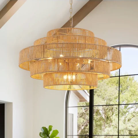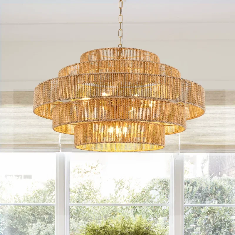 - Design style: Modern and rustic farmhouse styles are combined to show a unique beauty. The hand-woven natural rattan brings a natural and warm atmosphere, while the drum design gives the chandelier a modern and simple feel.