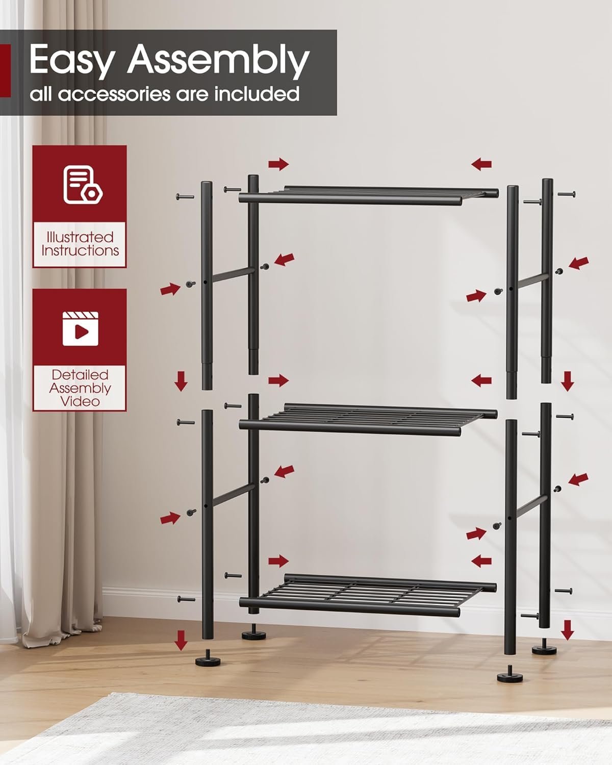 Organize your home efficiently with this compact 3 tier metal storage rack black small space, designed to fit perfectly in tight areas while maximizing storage capacity. Its strong structure and smart design make it an ideal adjustable feet kitchen shelf organizer narrow design, ensuring stability even on uneven surfaces. Whether used in kitchen, laundry, or garage, this laundry room space saving metal shelving unit 3 tier provides a clean and organized storage solution for everyday essentials.