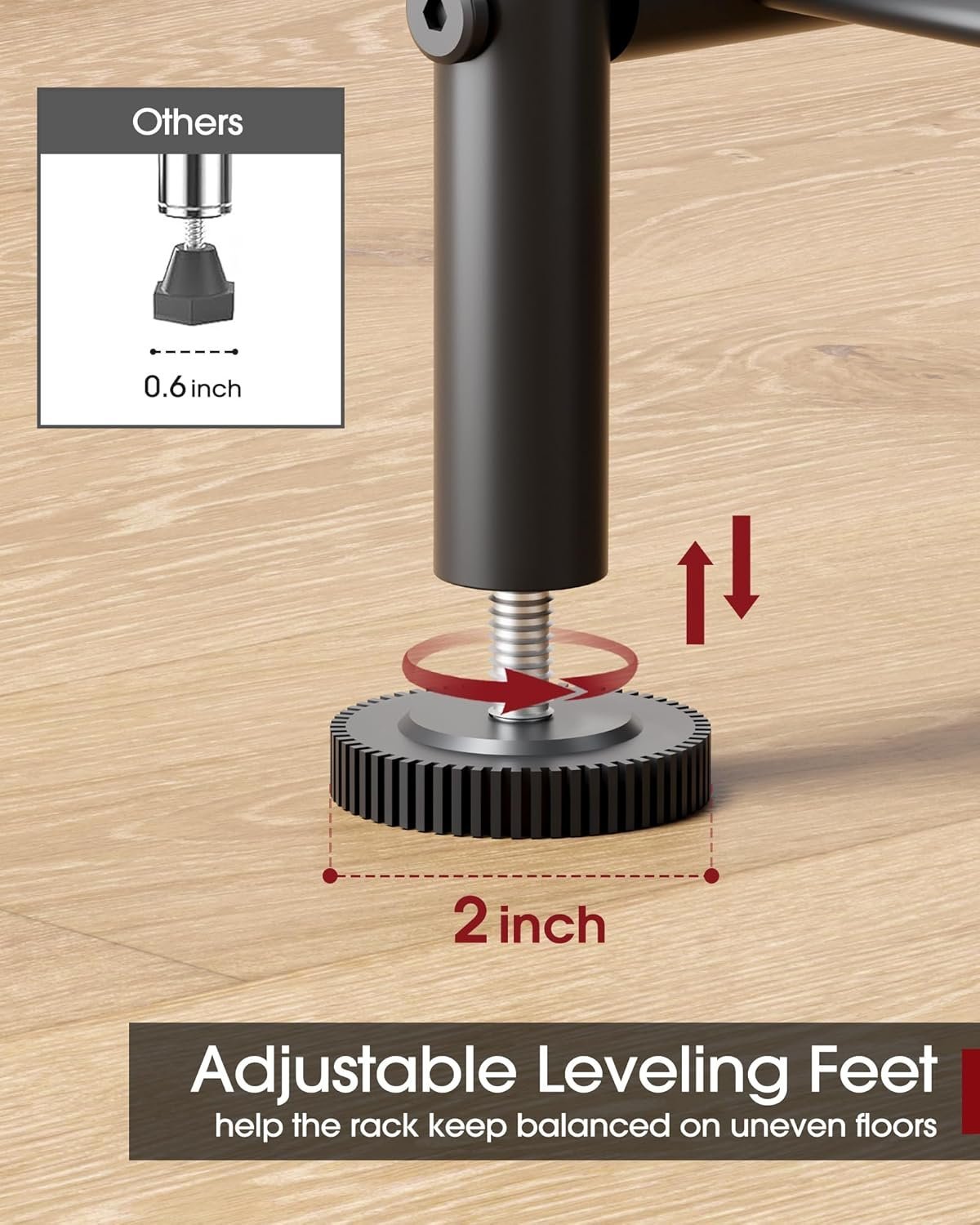 - It includes adjustable leveling feet for stable placement on uneven floors.