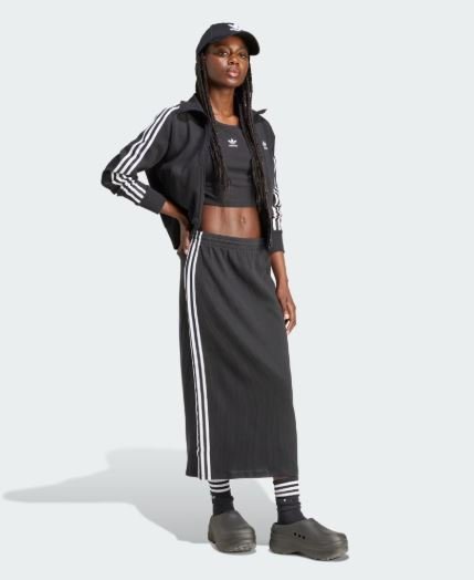 Move with confidence in this adidas skirt. The slim, doubleknit build provides a sleek silhouette that fits close to the contours of your body, following your every stride. Signature details give a subtle nod to our sporty heritage while elevating your look into fashion-forward terrain.