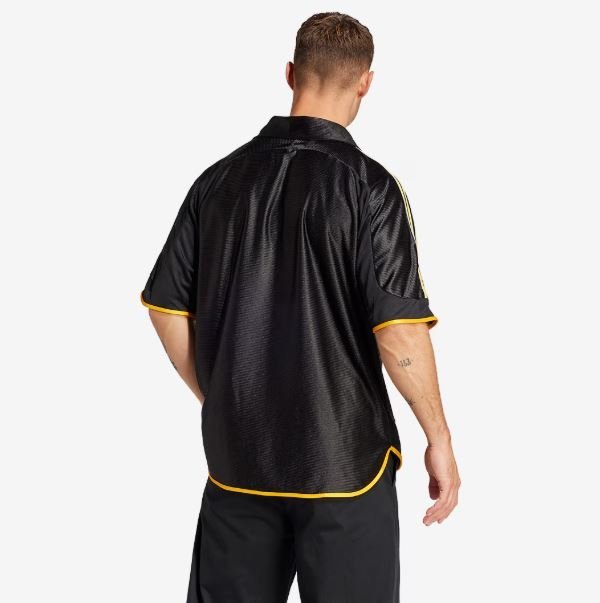 Part of a special range designed to commemorate the 1999/00 UEFA Champions League winners, the adidas Originals Real Madrid away shirt evokes images of a legendary squad that featured global superstars like Raul, Manolo Sanchis, Roberto Carlos, Clarence Seedorf and Steve McManaman. After a dominant performance in the first group stage of the 1999/00 UCL, Real Madrid struggled through the second group stage as runners-up to a dominant Bayern Munich, losing 4-2 and 4-1 to the Bavarians along the way. They were held at the Bernabeu in the first leg of their knockout tie against defending champions Manchester United, but Raul scored a two-minute brace at Old Trafford to secure progress to a semi-final against that intimidating Bayern side. This time, Real were able to get the better of their German rivals in the home tie, avenging their previous defeats with a narrow 3-2 aggregate win over the two legs. For the first time in the Champions League’s history, the final would be contested between two teams from the same country – Real Madrid and Valencia. Steve McManaman’s legendary scissor-kick volley characterised a dominant performance from Madrid, and they coasted home to a comfortable 3-0 win and lifted La Octava. The old-school shiny fabric, classic fold-over collar and loose fit create a distinctly 00s look that takes you back to that magical night in Paris. The soft, lightweight polyester weave provides easy comfort in any situation, whether you’re having a casual kickabout with mates, cheering Los Blancos on from the Bernabeu stands, or travelling the continent for European fixtures. Made with recycled polyester, this jersey cuts down on the production of plastic waste and helps you do your bit for the environment.