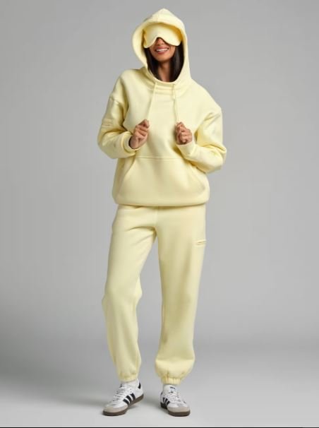 - Oversized hood with built-in eyemask