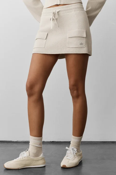 Knitted for an A-line silhouette that hangs off the hips without being tight, this skirt is your solution to an instantly cool and comfortable summer outfit. It feels drapey, soft, and light enough for warm weather with a drawstring waist, cargo pockets, and a mid-thigh-length hem.