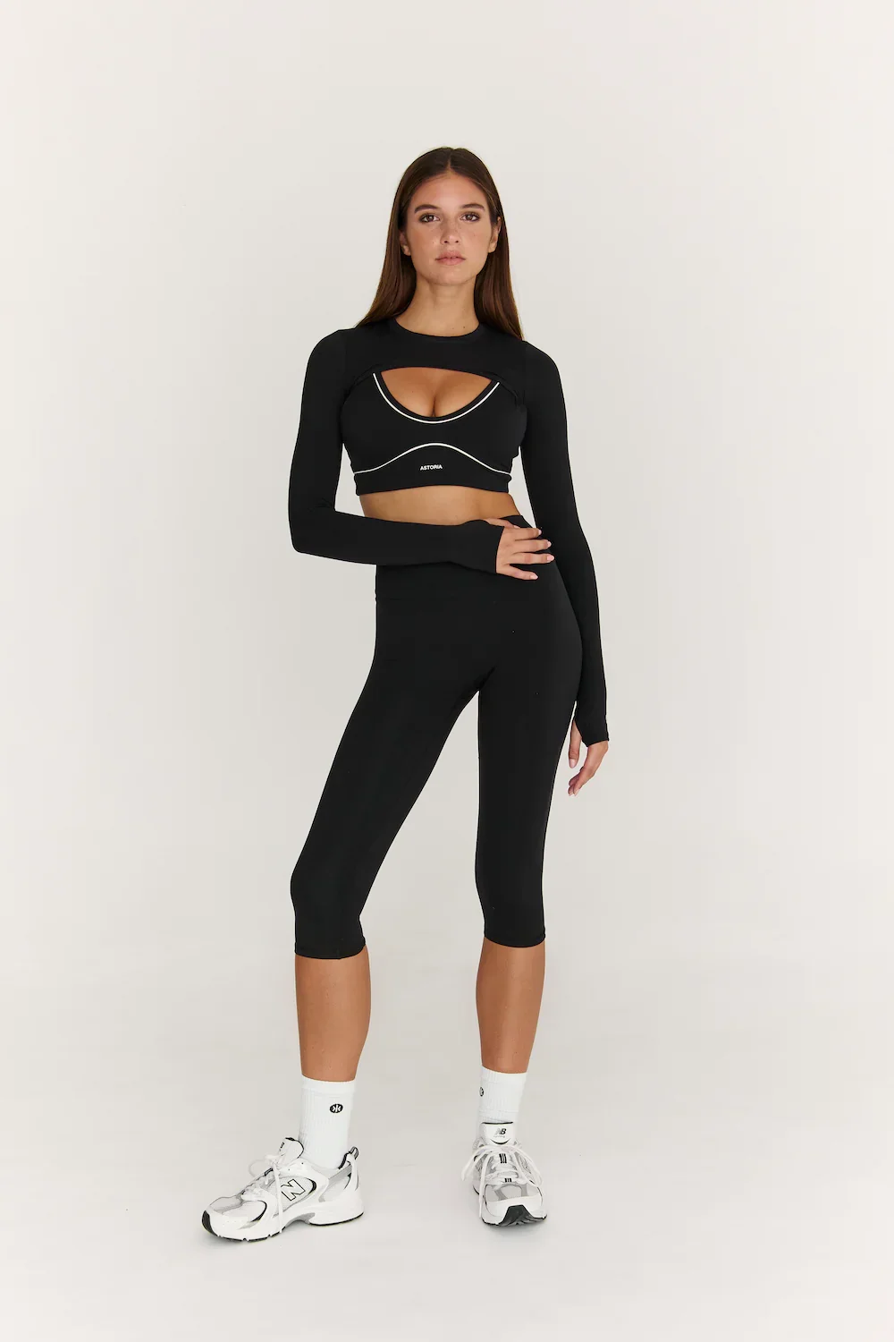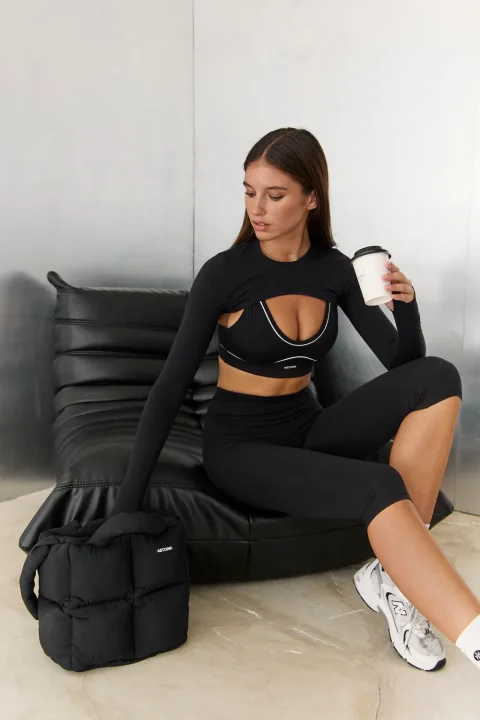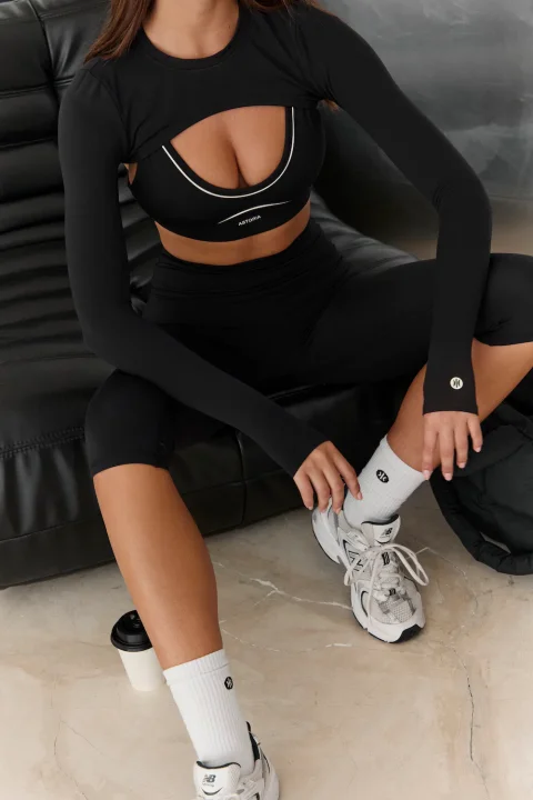 - Cropped design for a trendy athletic look