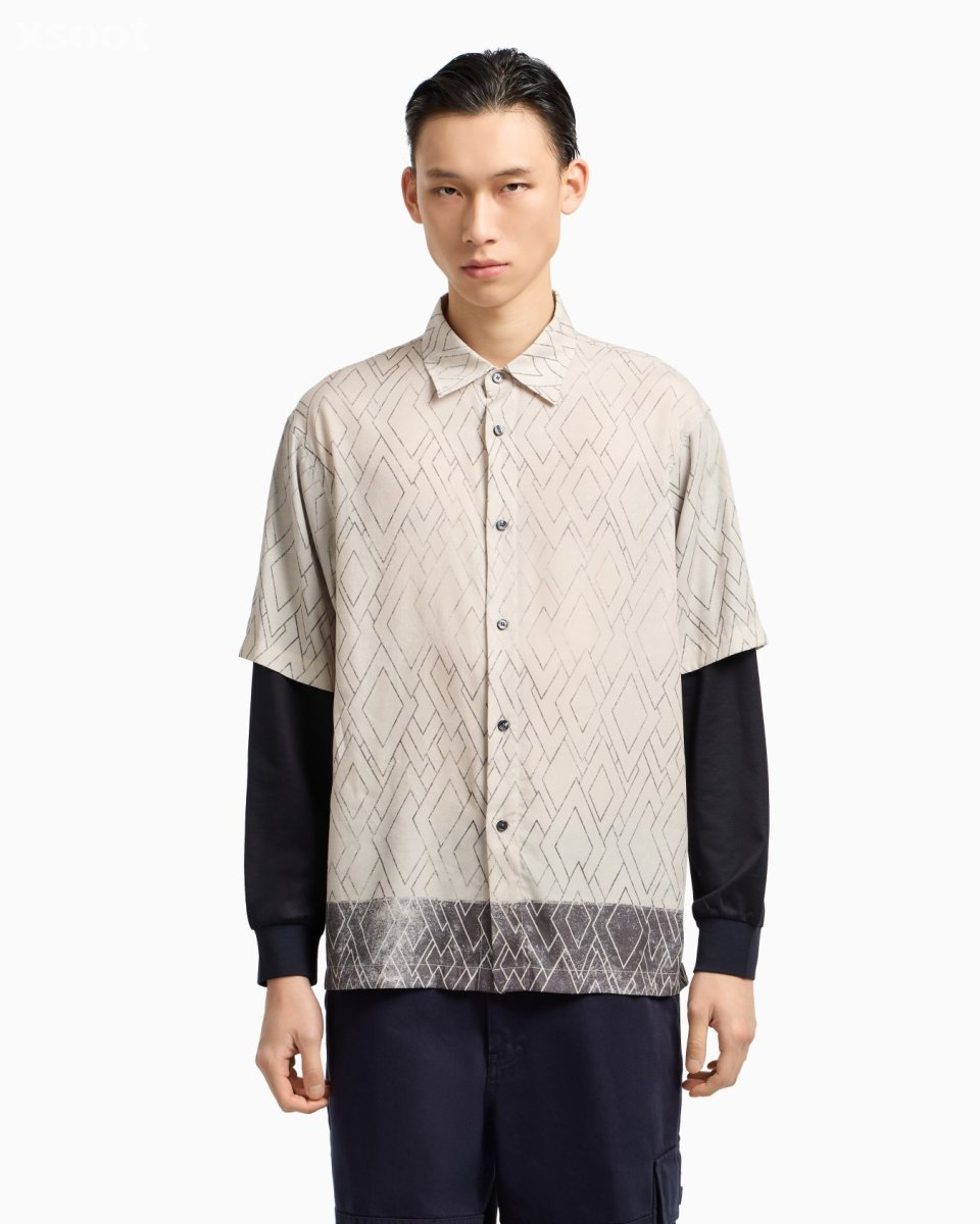 Comfort-fit, two-piece design featuring a short-sleeved printed shirt fixed to long sleeves in solid-colour jersey. The shirt is made in a Lyocell blend. Lyocell is a semi-synthetic fibre that has an exceptionally low impact on the environment: it is produced from eucalyptus trees and is valued for its excellent durability, breathability, absorbency and wrinkle-resistance.