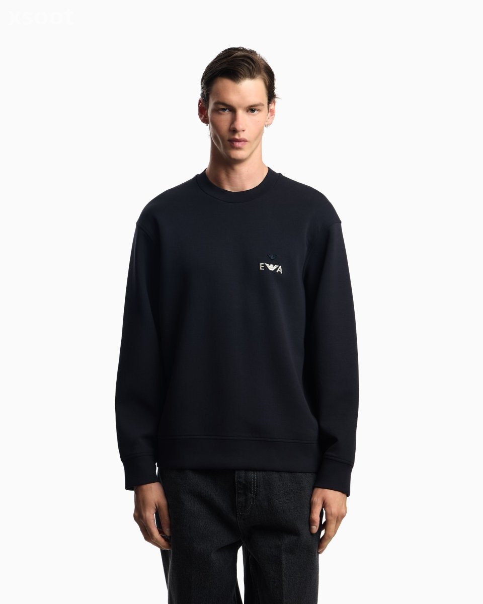 Cotton-blend jersey crew-neck sweatshirt. The contrasting super-embossed, embroidered EA logo completes and distinguishes the garment.