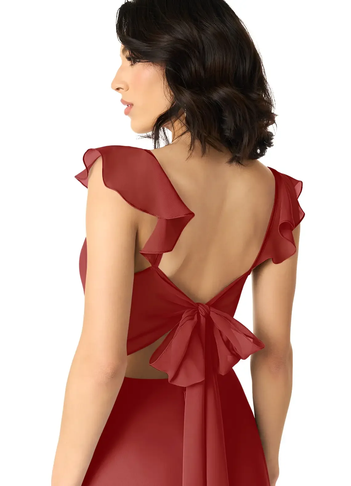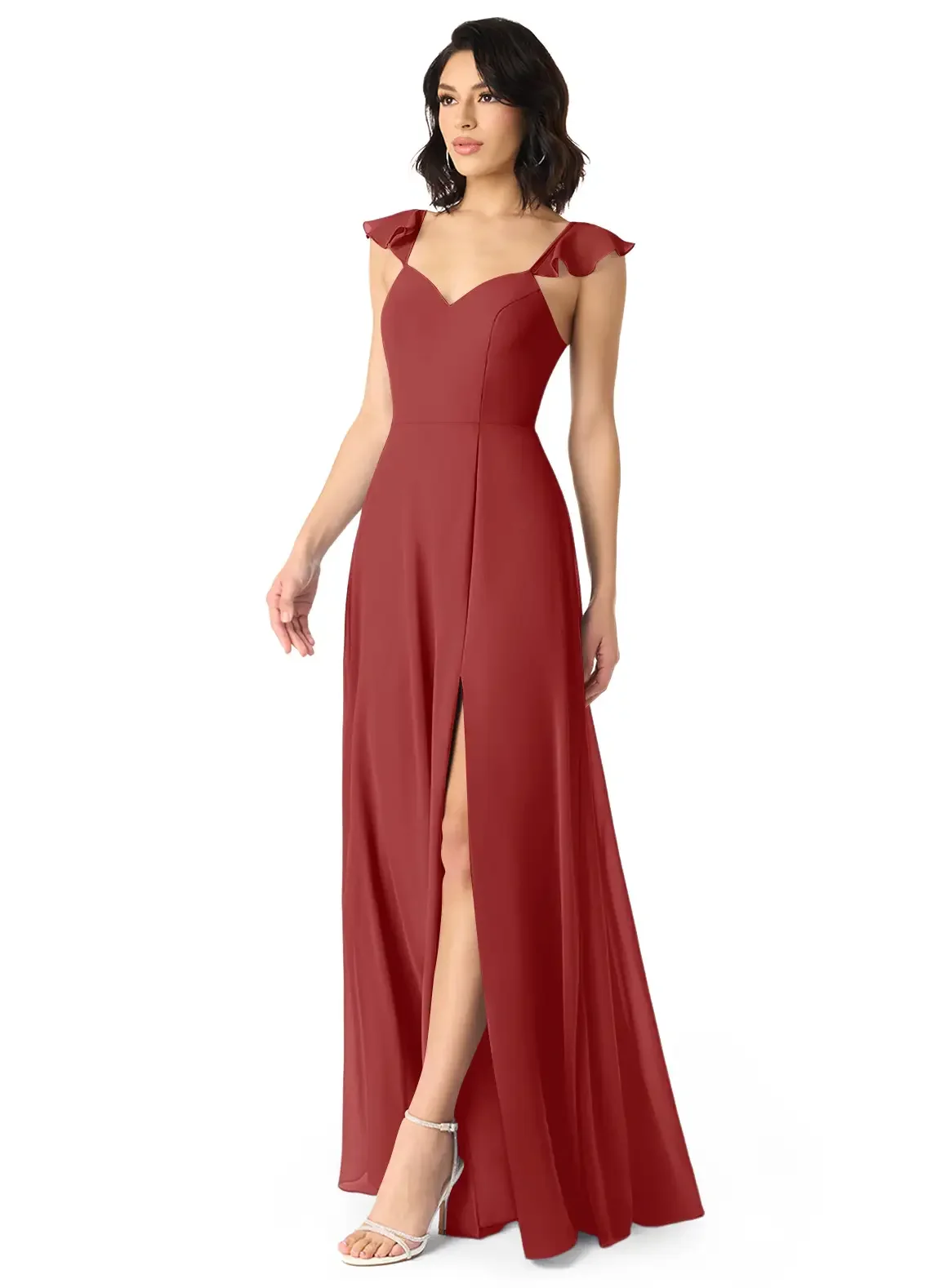 Elevate your style with this stunning rust chiffon a line dress v neck, designed to bring effortless elegance to any occasion. The soft drape and airy texture enhance movement beautifully, while the detailing of a ruched chiffon evening dress flowy style adds depth and charm. Perfectly tailored for comfort and grace, this lightweight formal dress rust color women delivers a refined yet relaxed feel for evening wear.
