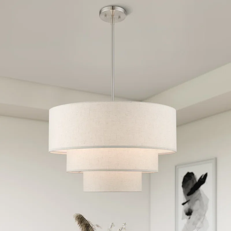 This 4-bulb chandelier brings sophisticated lighting to your dining room or entryway with its drum-shaped design and ambient lighting. It's crafted from steel, while the shade is available in multiple options for a versatile look. It includes a canopy and down rod, and it's compatible with sloped ceilings, making it adaptable to various spaces. This chandelier is dimmable, so you can adjust the light to suit your mood. Plus, it requires four 60W bulbs (sold separately) to cast a warm, inviting glow. Ideal for damp locations, this chandelier is a stylish choice for any room.
