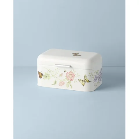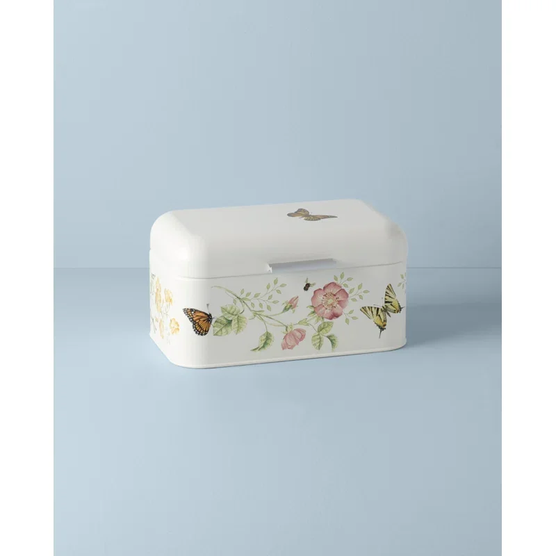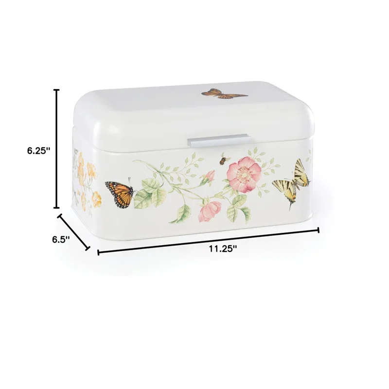 Keep your bread fresh with this airtight breadbox from our best-selling Butterfly Meadow collection] Crafted of durable metal with a beautiful butterfly and floral motif, it's the perfect addition to any kitchen.
