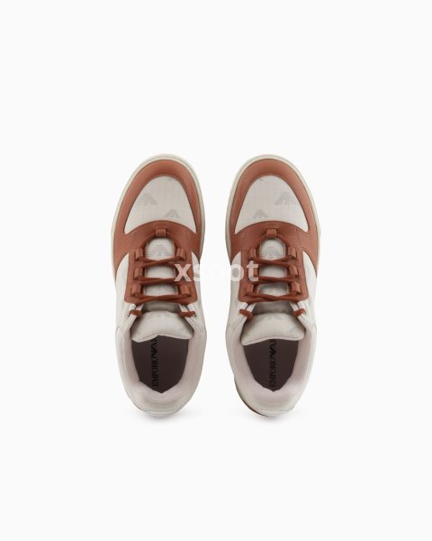 Sneakers in bright-coloured ripstop canvas, embellished with leather details that add artisanal accents to an offering with a fresh and fun allure, and a notched tread. Emporio Armani interprets the skating world of the late 1990s, offering uppers with padding on the collar and ankle, without ever losing sight of the brand’s signature clean, minimalist lines.