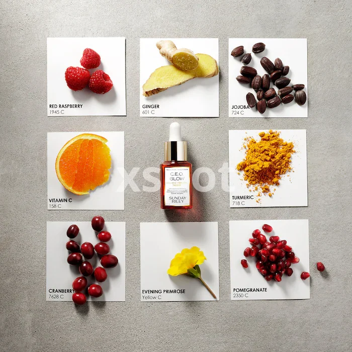 - Golden Turmeric: Distilled fraction of turmeric oil, rich in antioxidants and calming compounds; applied topically, it may help to improve the look of surface redness and skin evenness.