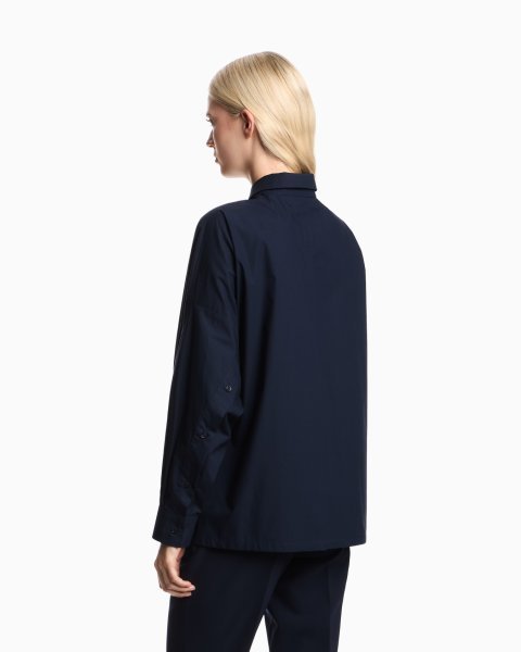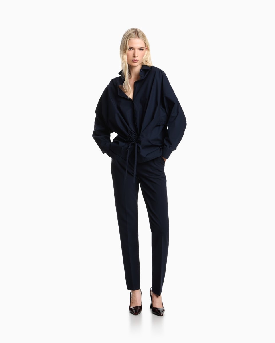 Blouse with flared hem made of fluid crêpe that takes on an ultra feminine style that will add an elegant touch to any outfit. The distinctiveness of the piece comes from the foulard collar with flaps that can be knotted to create a sophisticated decorative bow at the front.