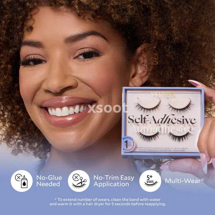 What Else You Need to Know: There’s no glue needed for Velour Lashes’ easiest lash application ever. These effortless Self-Adhesive Lashes are pre-glued so there's no mess and less time required in your routine. These pre-trimmed lashes last up to 12+ hours, are lightweight and natural-looking for everyday wear. They are no-measure, no-trim, no-glue— just lash and go. Plus, they can be used more than five times with proper care and storage.