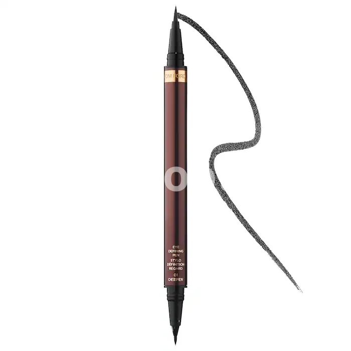 A dual-ended liquid eyeliner with a fine calligraphy tip on one end, and brush on the other for a range of sleek to dramatic effects.