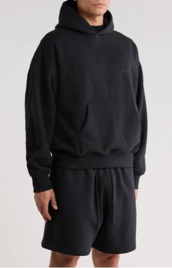 A structured hood and tonal logo detailing ground this cotton-blend hoodie with understated street energy.