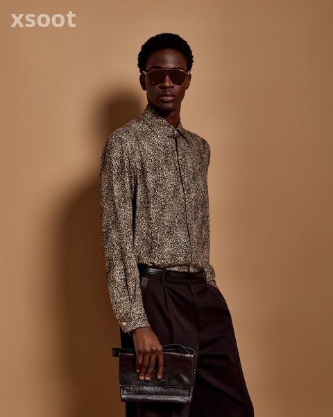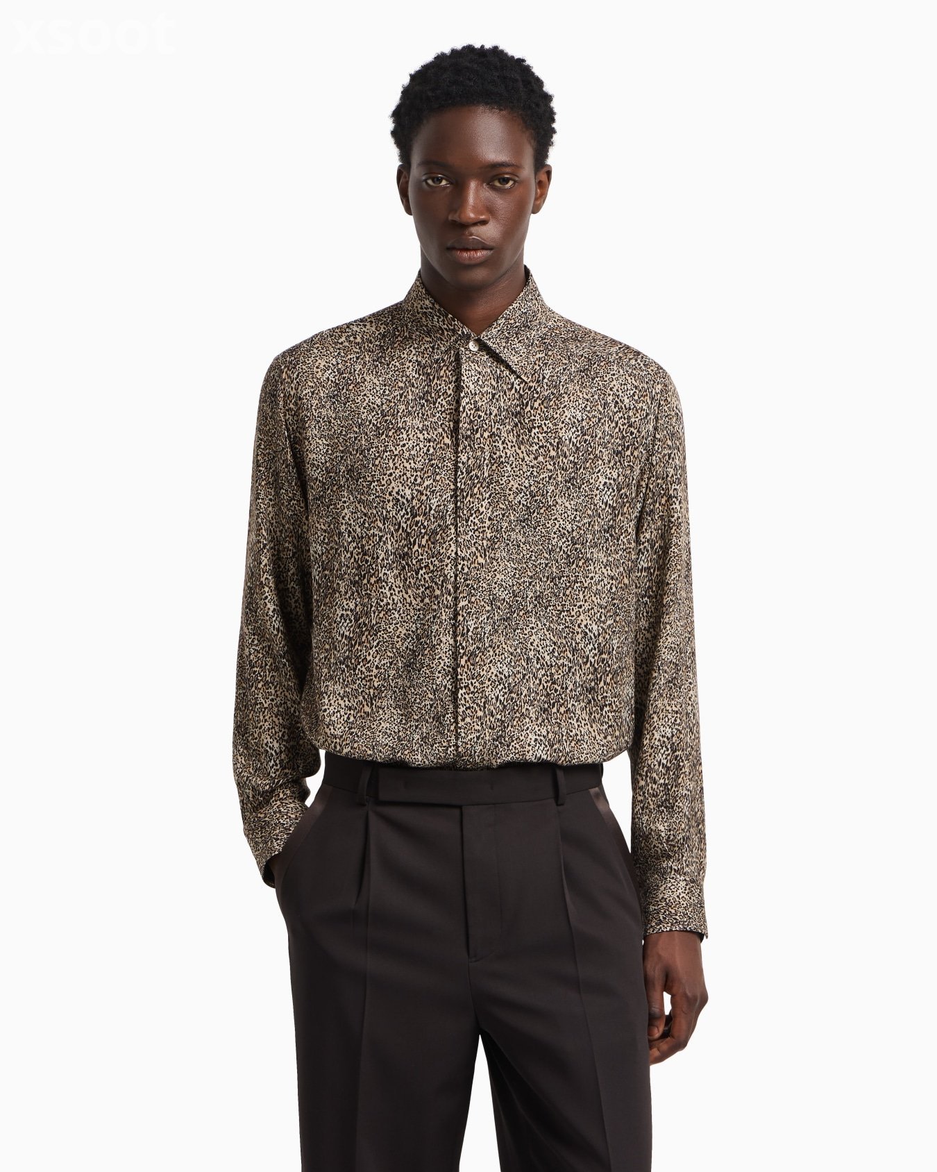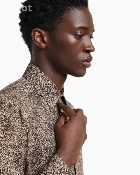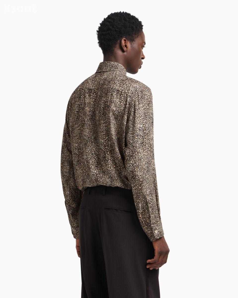 Concealed-button shirt made of flowing fabric in a wool and viscose blend featuring an animal print. Animal print patterns and details add extra character to the collection’s clothing: stylish elements, distinctive of the man who dares, that elevate his look with a hint of sensuality.