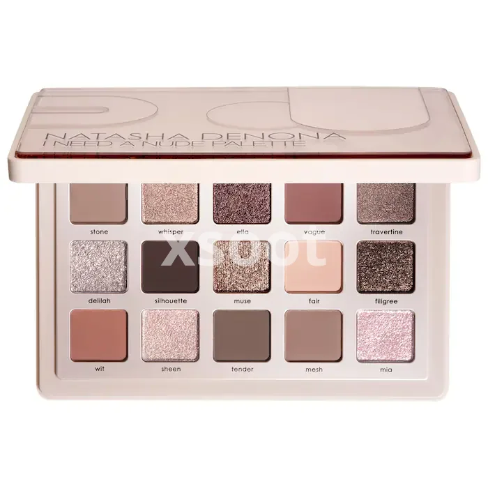A must-have, cool-toned palette with 15 new nude shades in Natasha’s iconic matte, metallic, sparkling foiled, and brand-new wet effect formula.