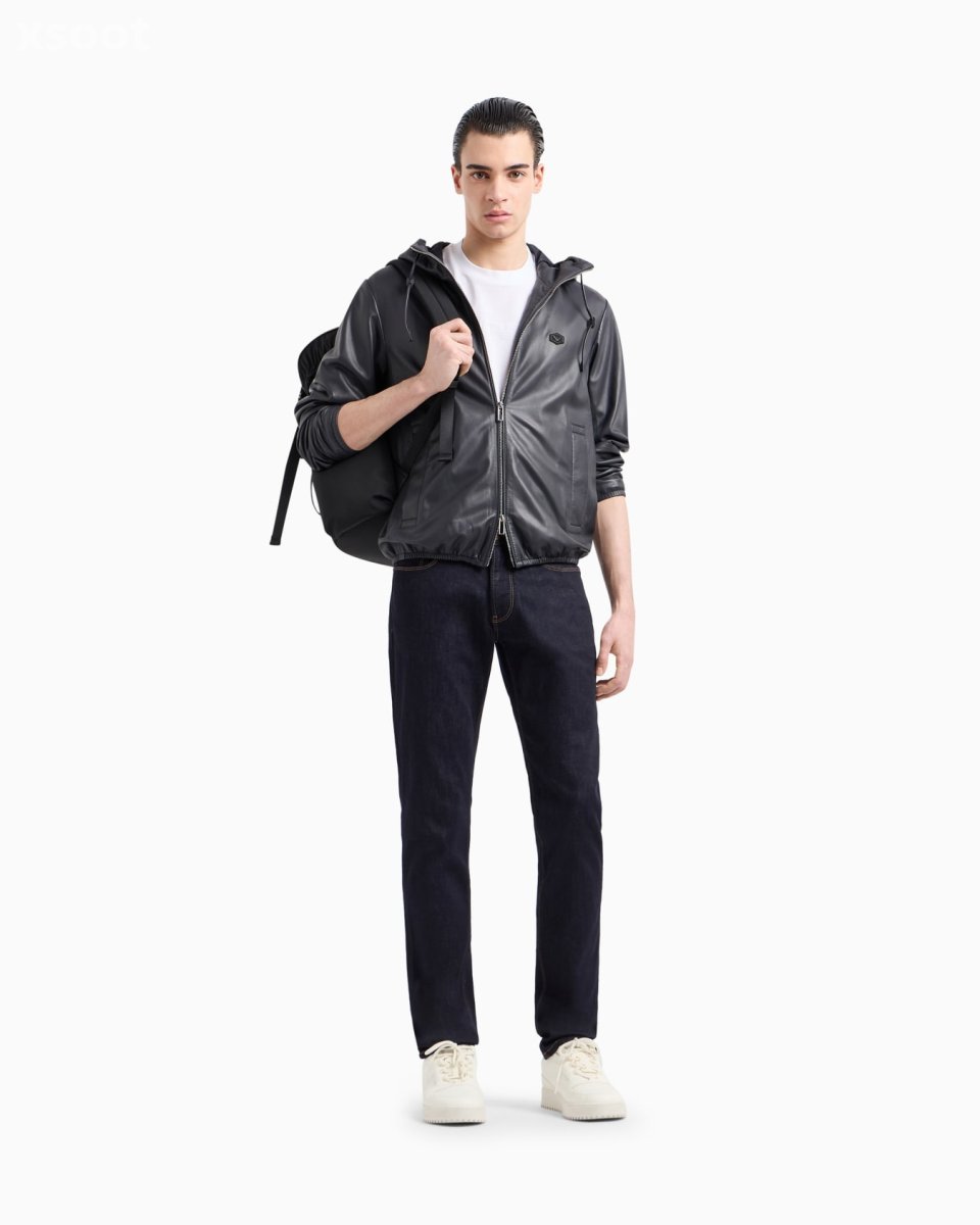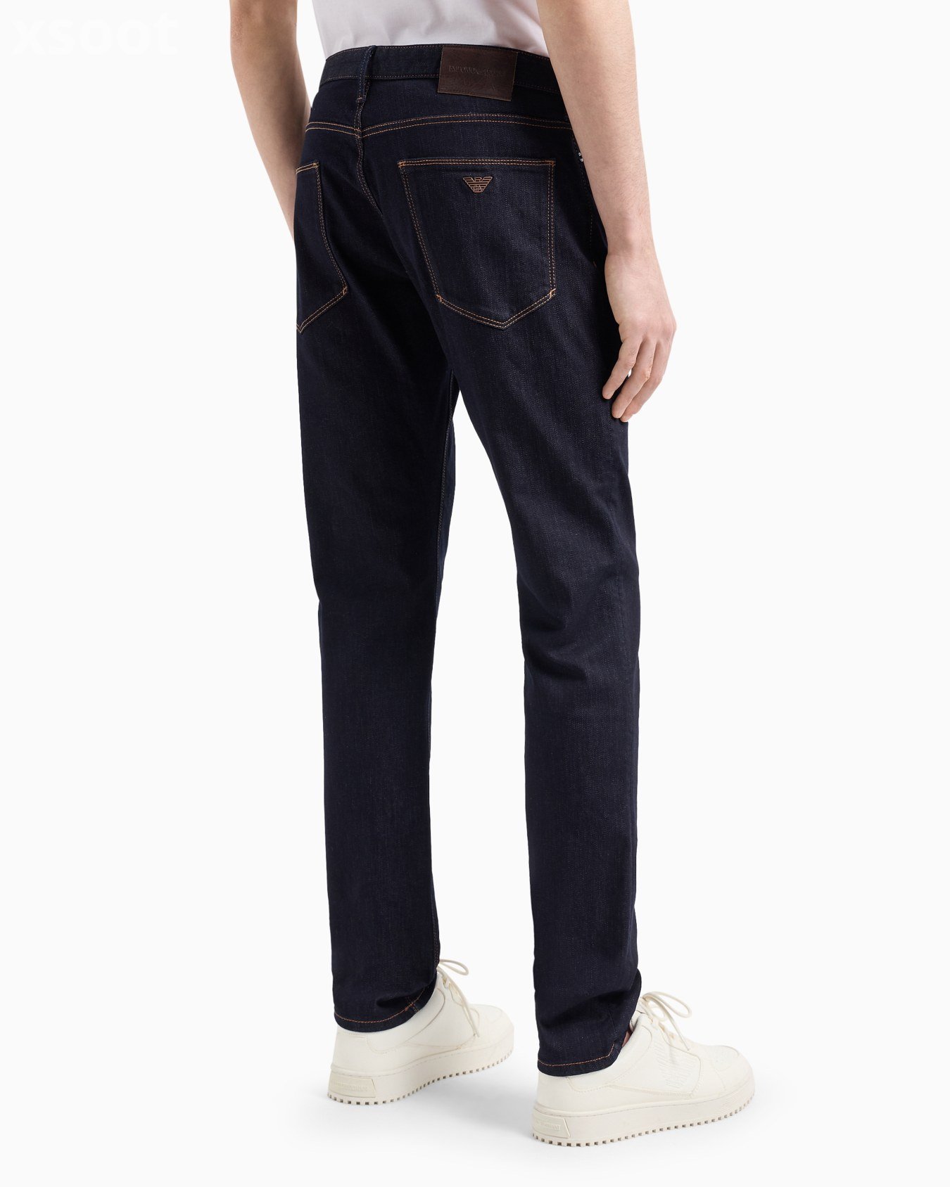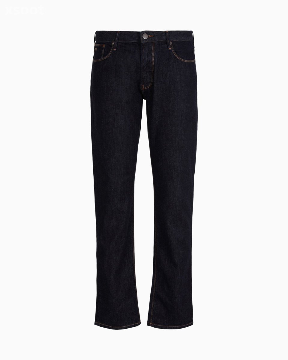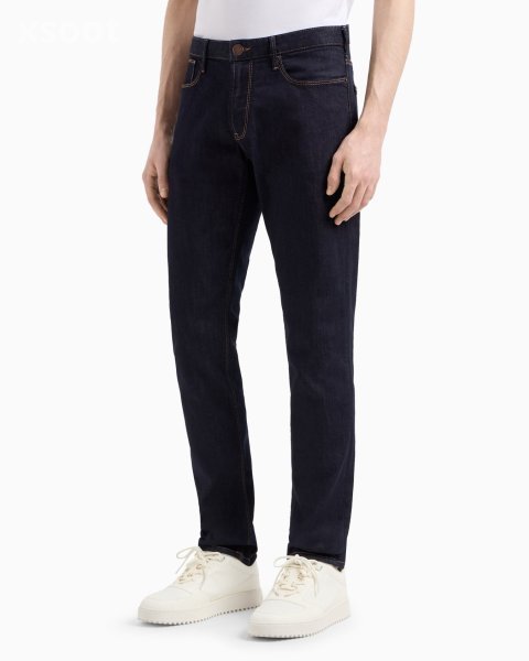 These jeans are made of stretch cotton comfort-denim with contrasting tobacco stitching. Slim fit, low-rise waist and zip closure. Slim fit. This item belongs to the Essentials clothing selection, the Emporio Armani capsule collection that is an evergreen statement of style: an ongoing collection with clean, well-designed shapes for a wardrobe that meets the demands of any season. These “essential”, versatile pieces are a must-have for the male wardrobe.