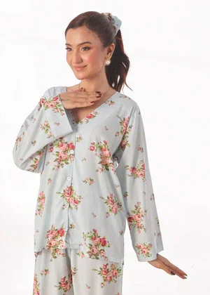 Experience softness and serenity in the Rose Mist Lounge Set. With delicate pink roses printed on a calming pastel blue base, this linen pajama suit offers lightweight comfort and timeless charm — perfect for peaceful sleep or slow mornings at home.