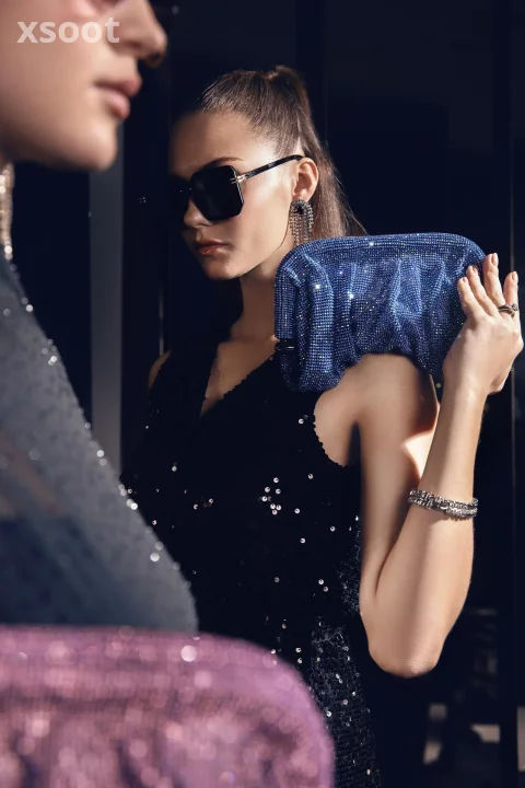 This dazzling clutch is adorned with shimmering rhinestones, making it perfect for special occasions or adding a hint of luxury to your everyday style. It comes in 7 diverse yet stunning colors: Green, Black, Purple, Blue, Silver, Beige, and Golden.