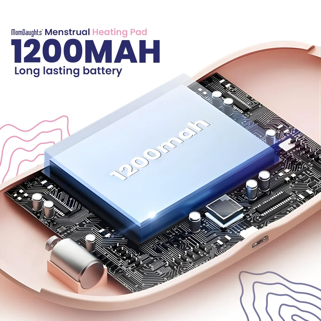 Rechargeable electric period heating pad with built-in vibration massage, USB charging, 1200mAh battery, and adjustable heat and intensity settings
