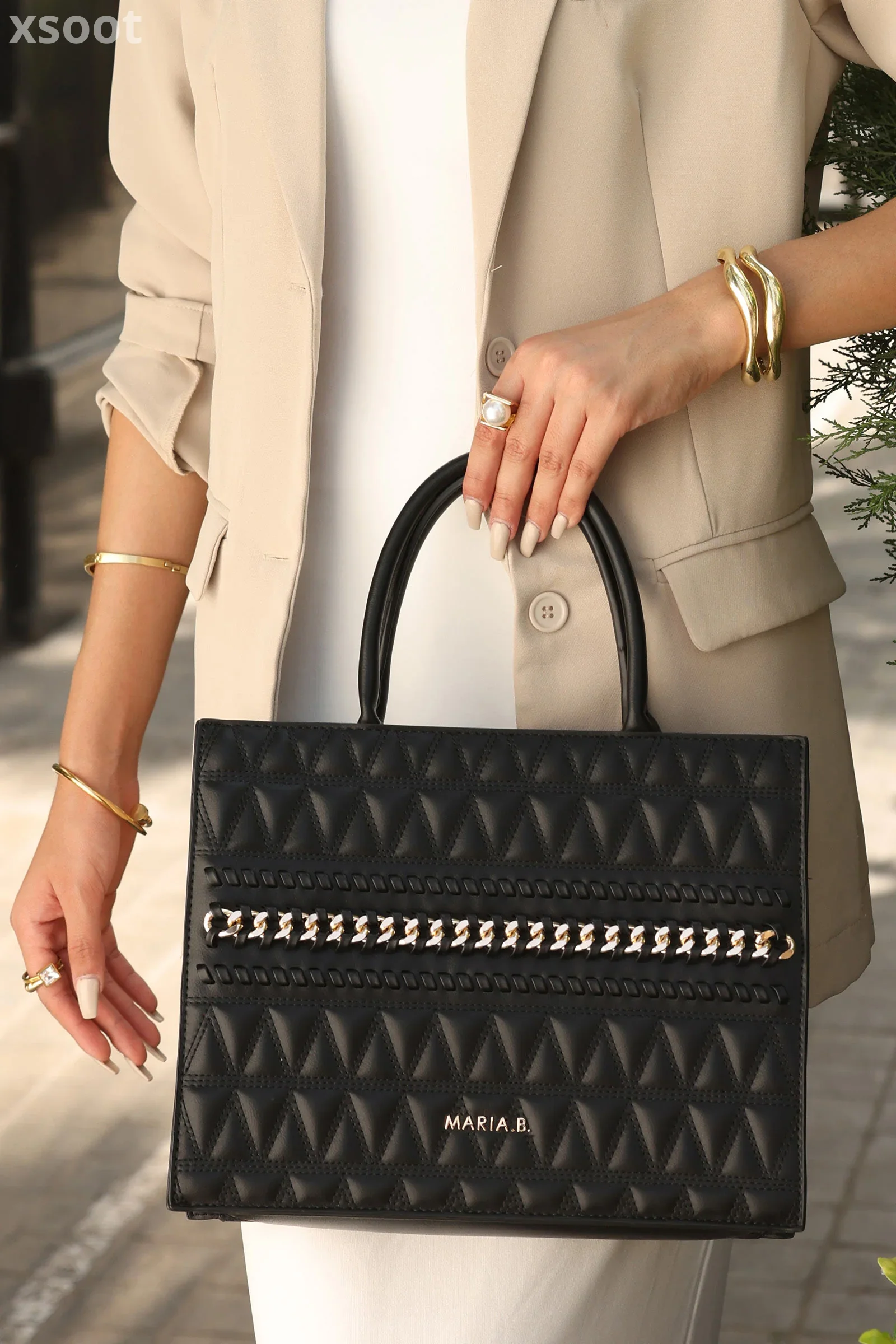 Quilted Leather Exterior With Braided Chain & Thread Detailing