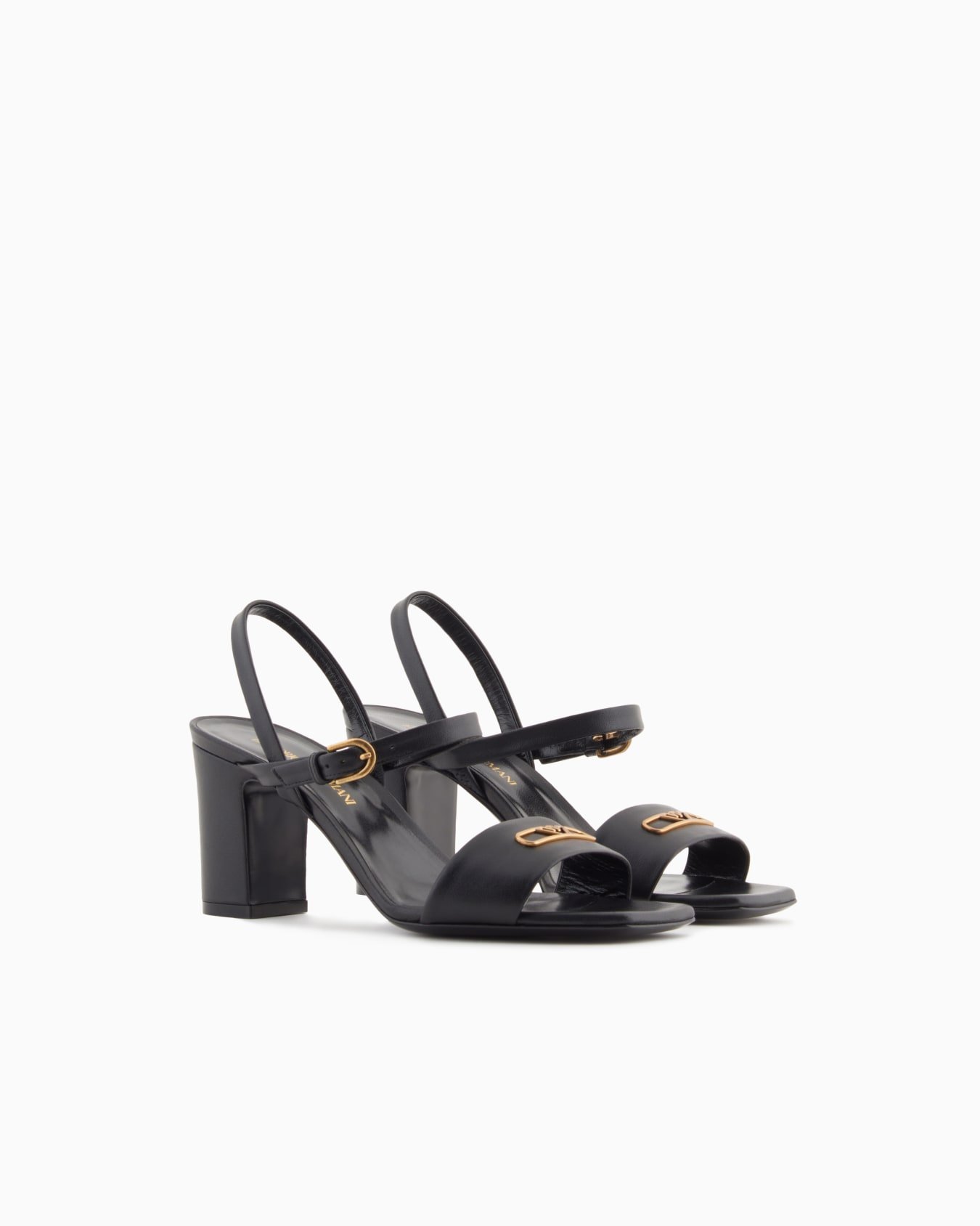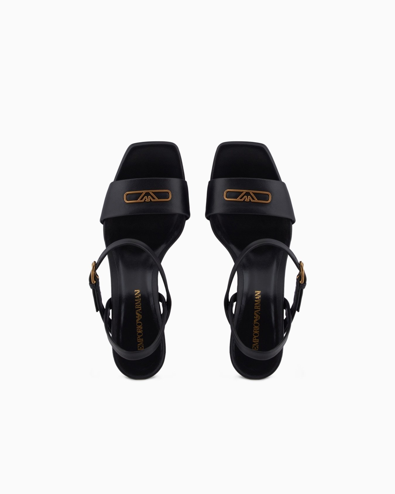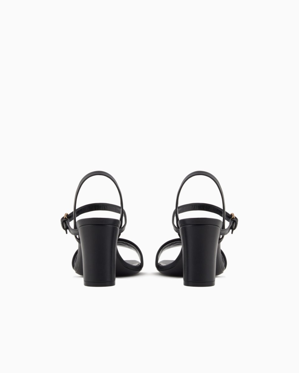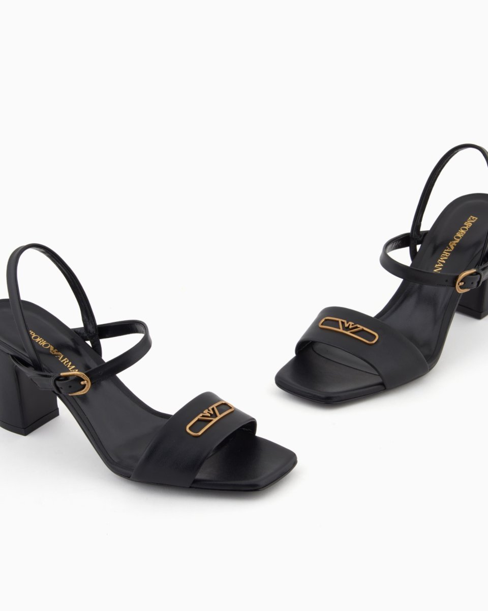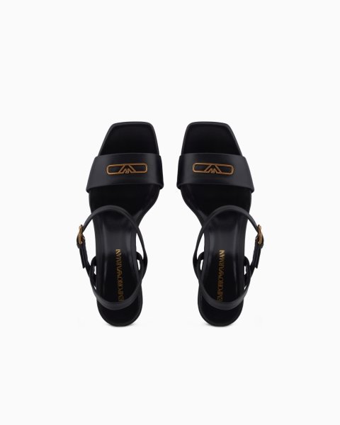 Sandals with heel, ankle strap and upper in nappa leather with a metal eagle logo. A versatile, clean-lined selection that is easy to wear.