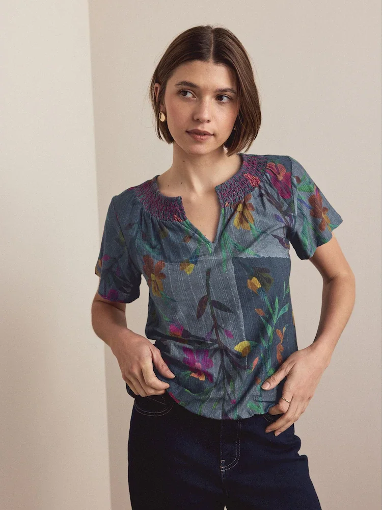 Our notch neck bubblehem t-shirts are the perfect everyday wear, featuring a flattering shape that cinches at the hem. This top includes a stylish notch neck and comfortable short sleeves, perfect for a casual yet put-together look.