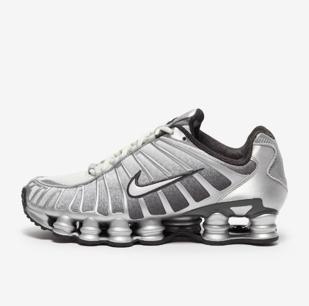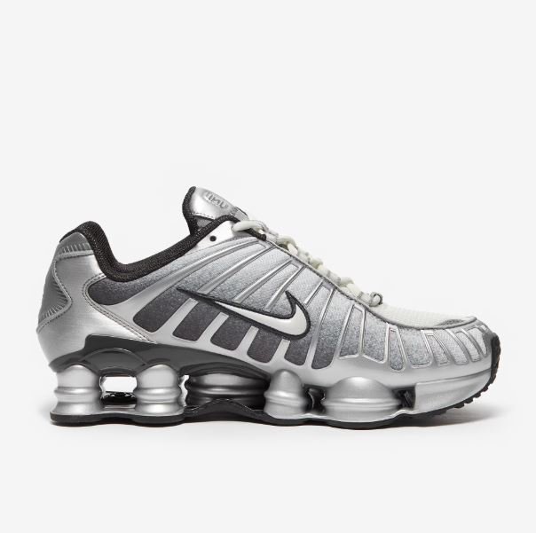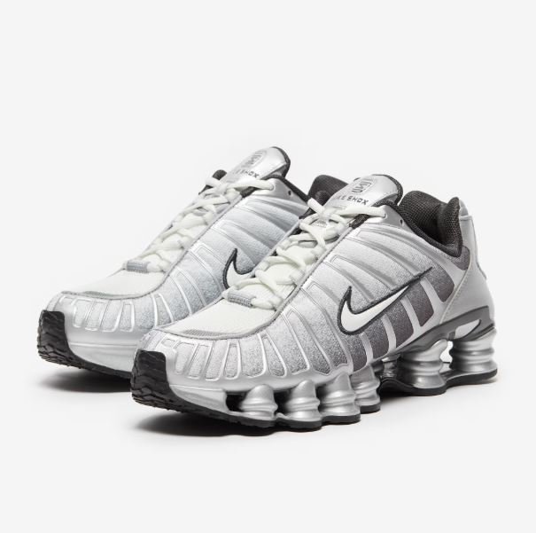 Throw it back to the early noughties with the Nike Sportswear Shox TL Print in Metallic Silver/Summit White/Wolf Grey, returning as a recrafted version of the 2003 original in breathable mesh and impact-absorbing Shox technology.