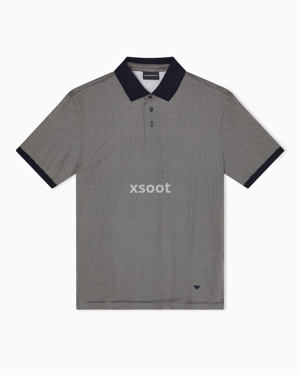 Polo shirt made of lyocell blend jersey, a light and breathable fabric that offers superior comfort. The garment is characterized by the micro patterned print that runs across the entire texture, giving an exclusive optical effect.