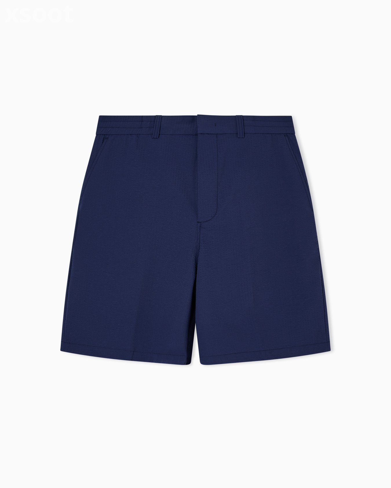Chino-style Bermuda shorts made of a nylon spandex with a light, textured appearance, in a modern design that blends with the exclusive seersucker fabric, one of the textures favoured by Armani and that gives the entire piece a dynamic, crisp feel.