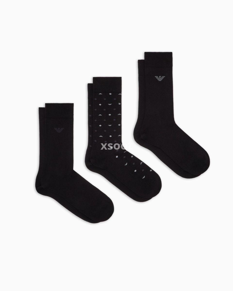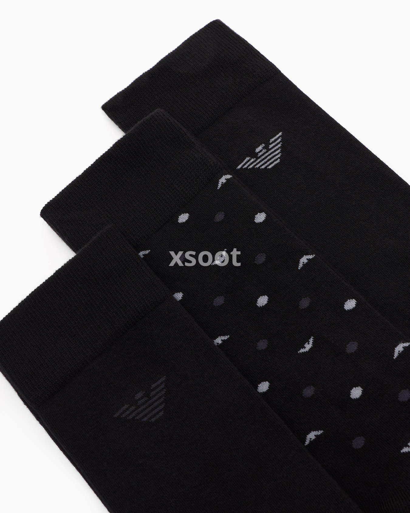 Three-pack of stretch cotton socks with decorative jacquard logo.