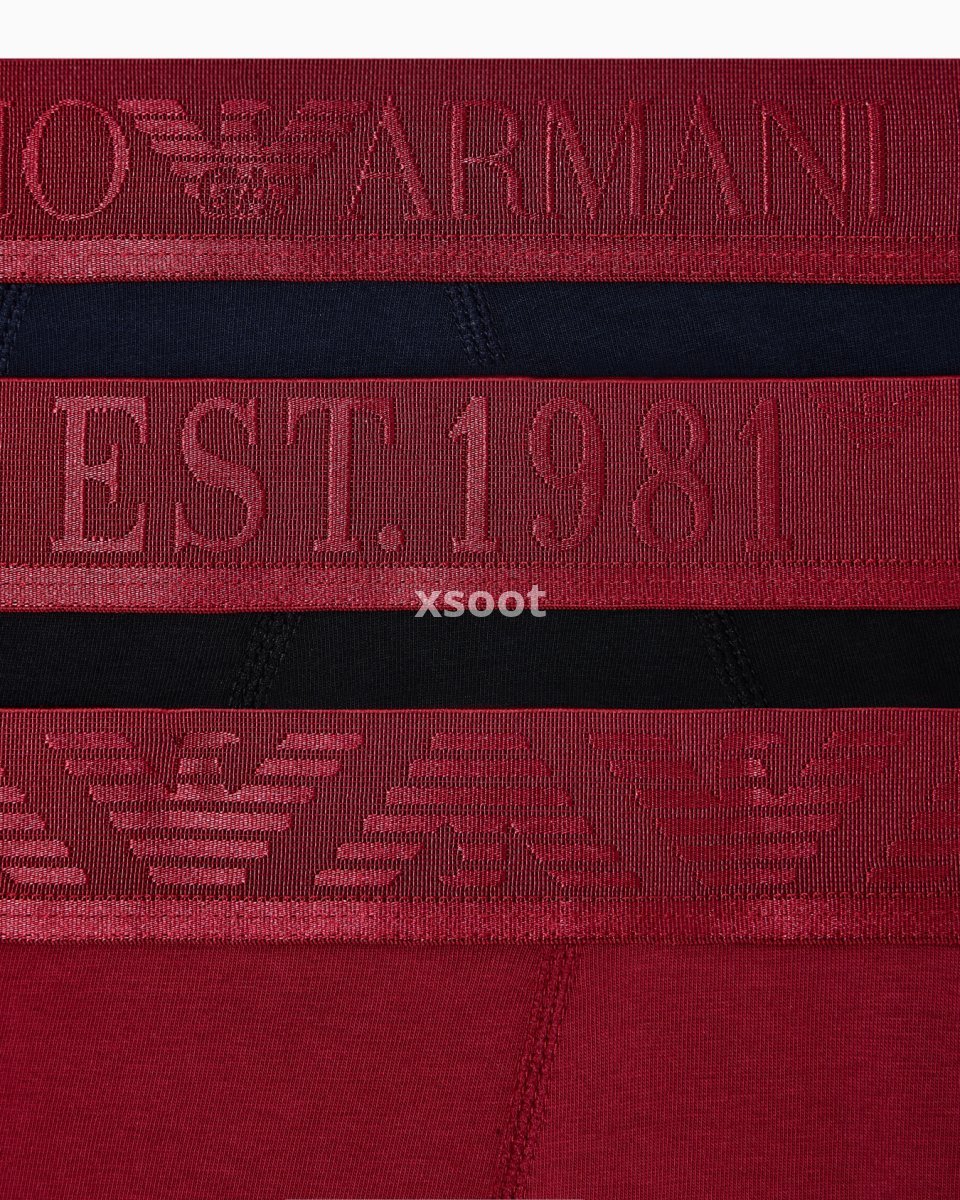 Three-pack of stretch cotton jersey boxer briefs made from natural fibres from organic farming. Shiny-finish logo elasticated waist.