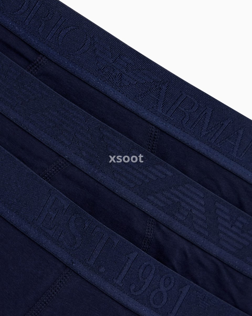 Three-pack of stretch cotton jersey boxer briefs made from natural fibres from organic farming. Shiny-finish logo elasticated waist.