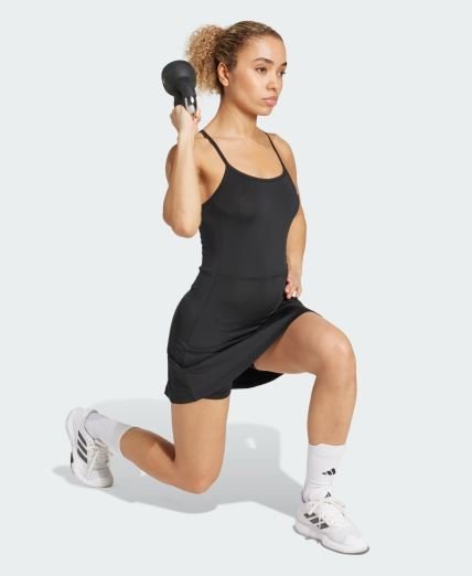 Cardio class to lifting session, this adidas dress is a chic option for any kind of training. The slim fit and stretchy fabric allow complete freedom of movement. Built-in shorts give you full coverage for deep squats and handstand holds. CLIMACOOL wicks and disperses sweat for cool, dry and distraction-free performance. CLIMACOOL helps you manage sweat with materials that wick and manage sweat quickly. Its fast-dry fibers give you a fresh-skin feel. This product is made with at least 70% recycled materials. By reusing materials that have already been created, we help to reduce waste and our reliance on finite resources and reduce the footprint of the products we make.