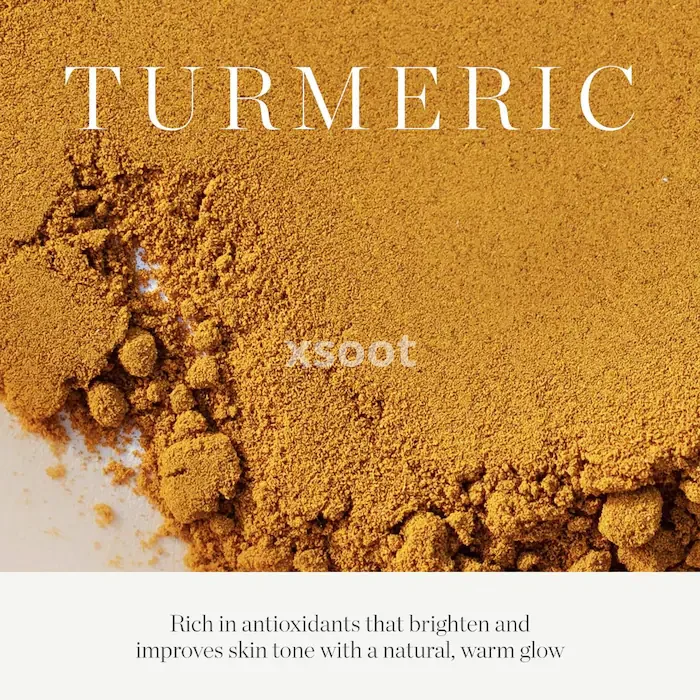 - Turmeric: Visibly brightens, evens the look of skin tone, and helps soothe redness.