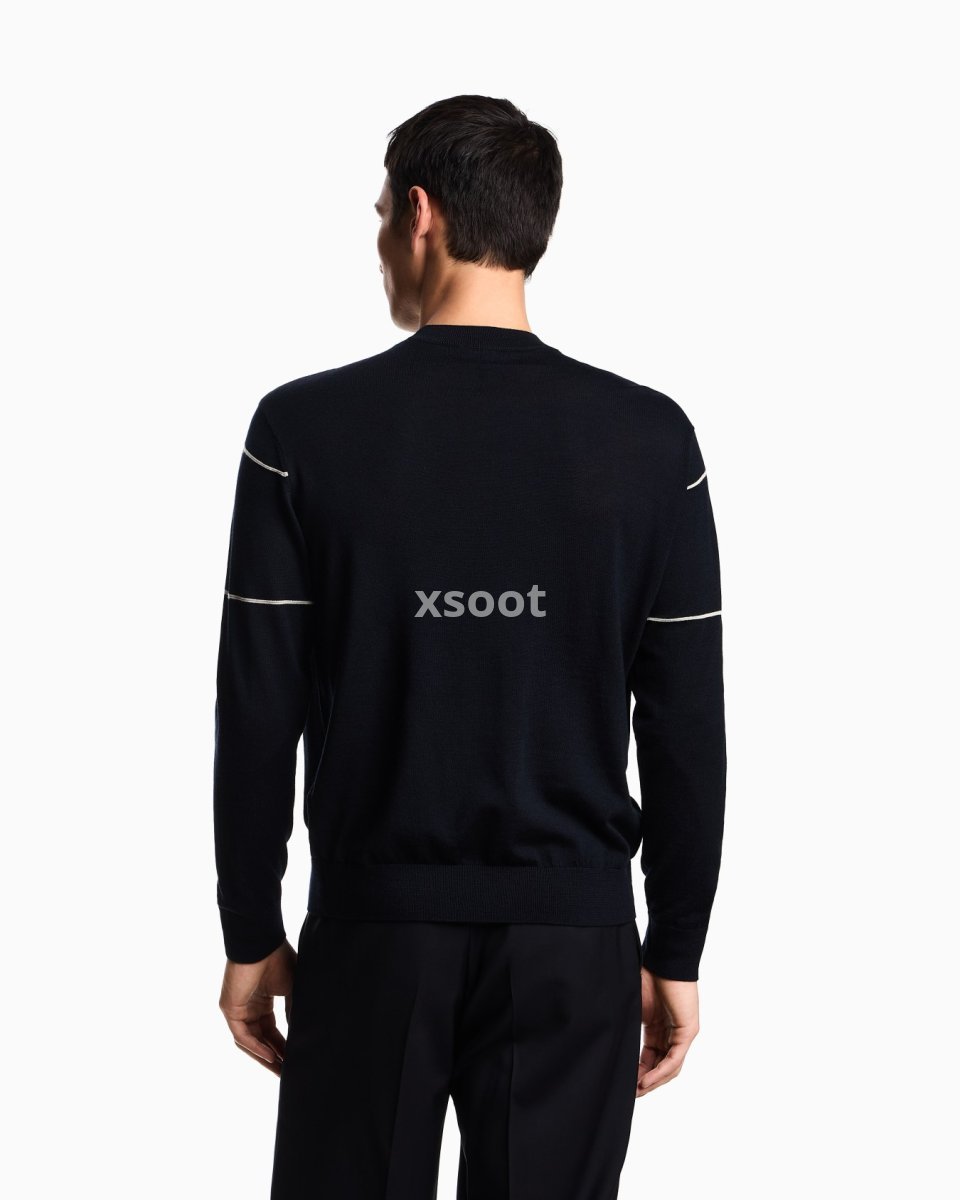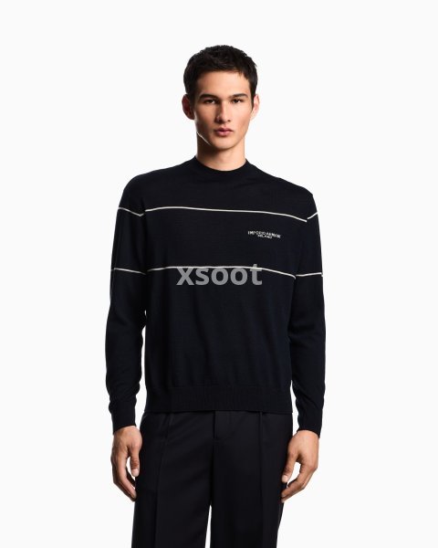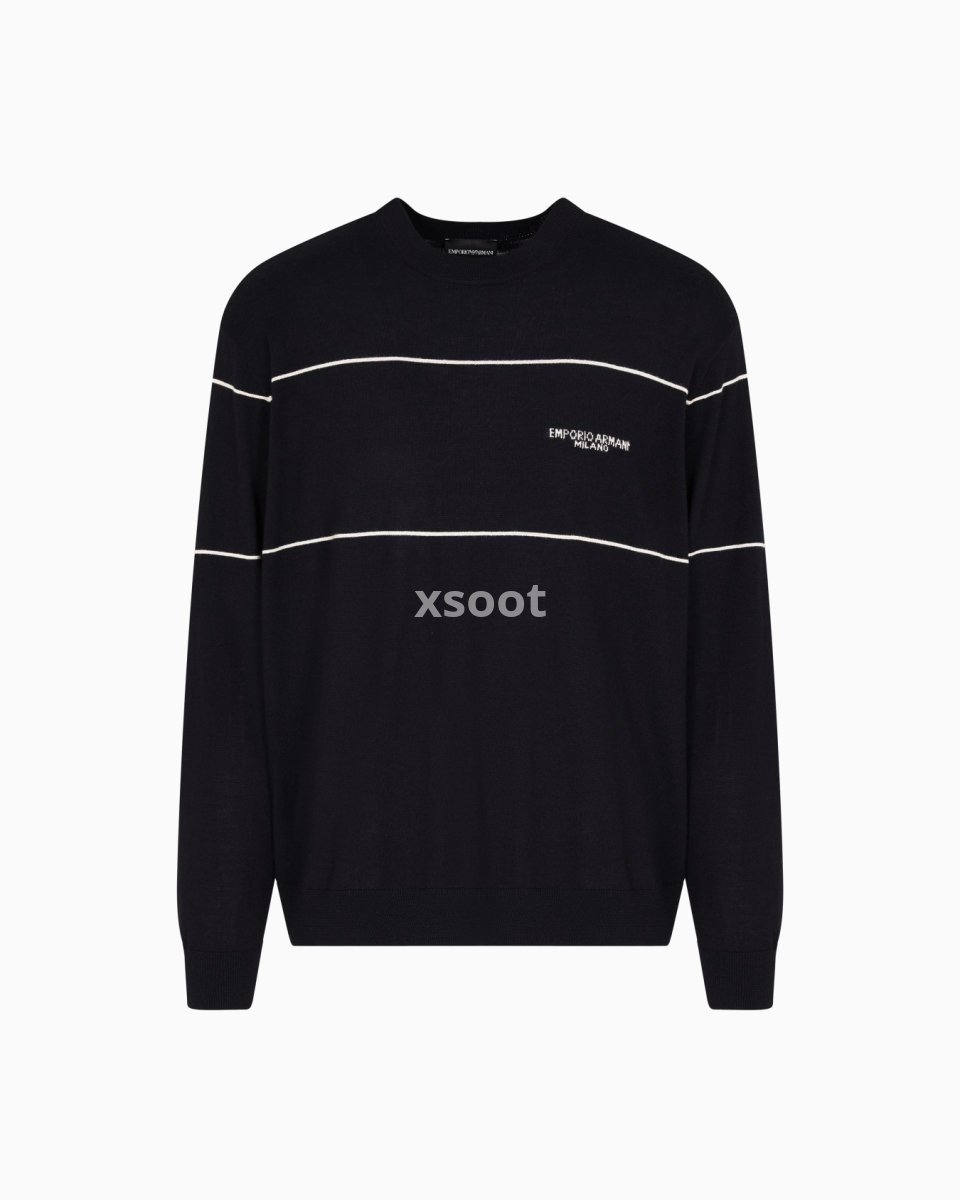 Crew-neck jumper made of pure virgin wool with a particularly smooth finish and embellished with a jacquard logo. The Emporio Armani logo is a constant of undeniable style, whether it’s shown off, displayed or just hinted at.