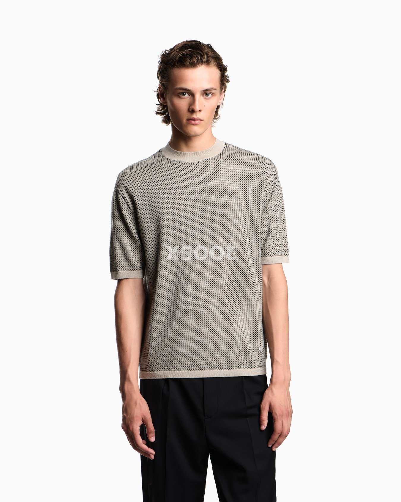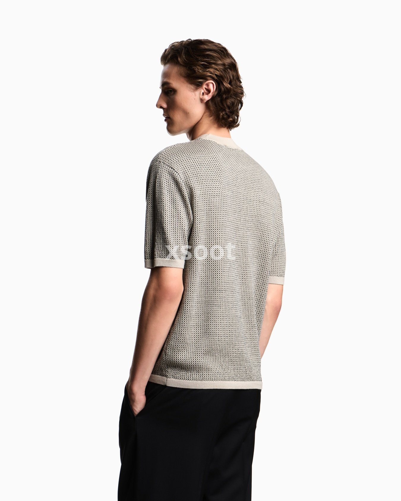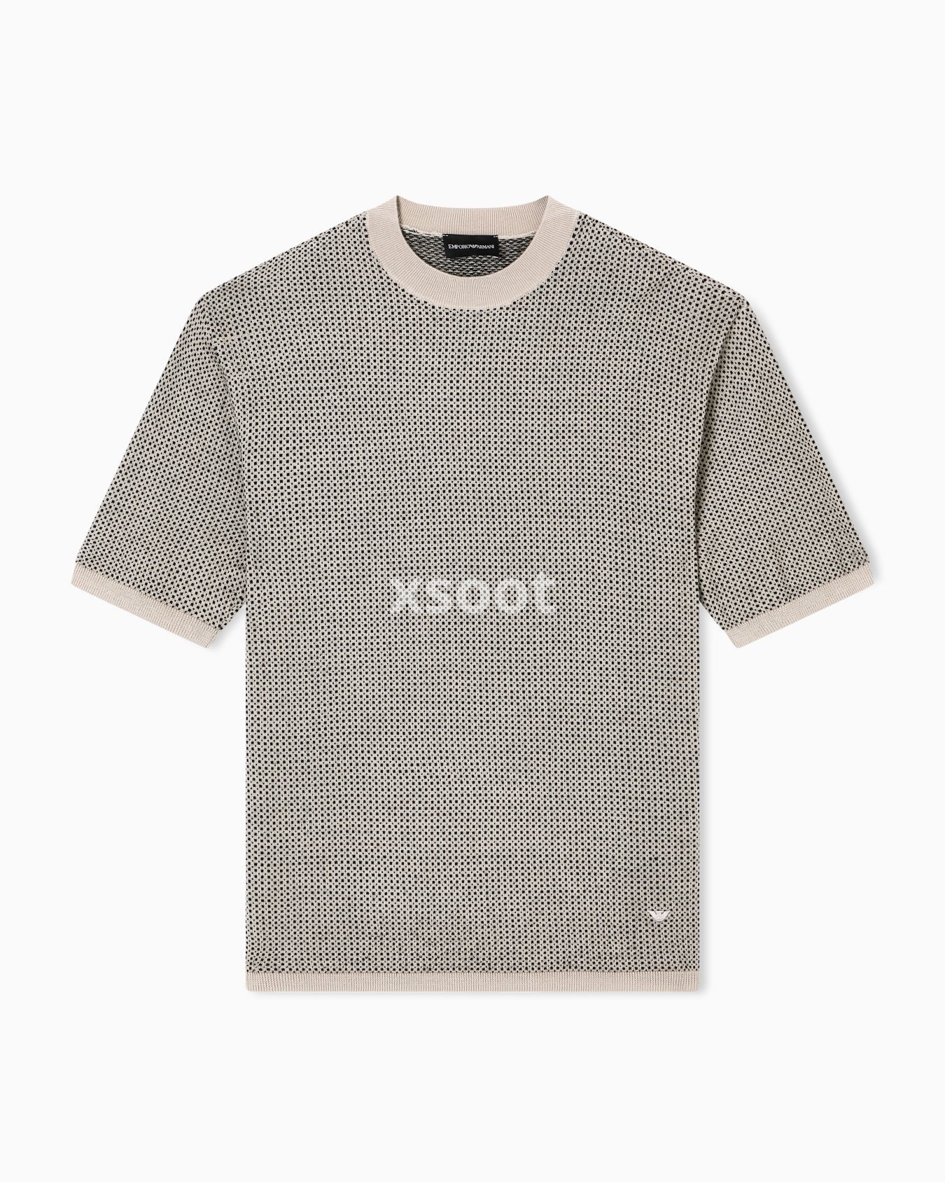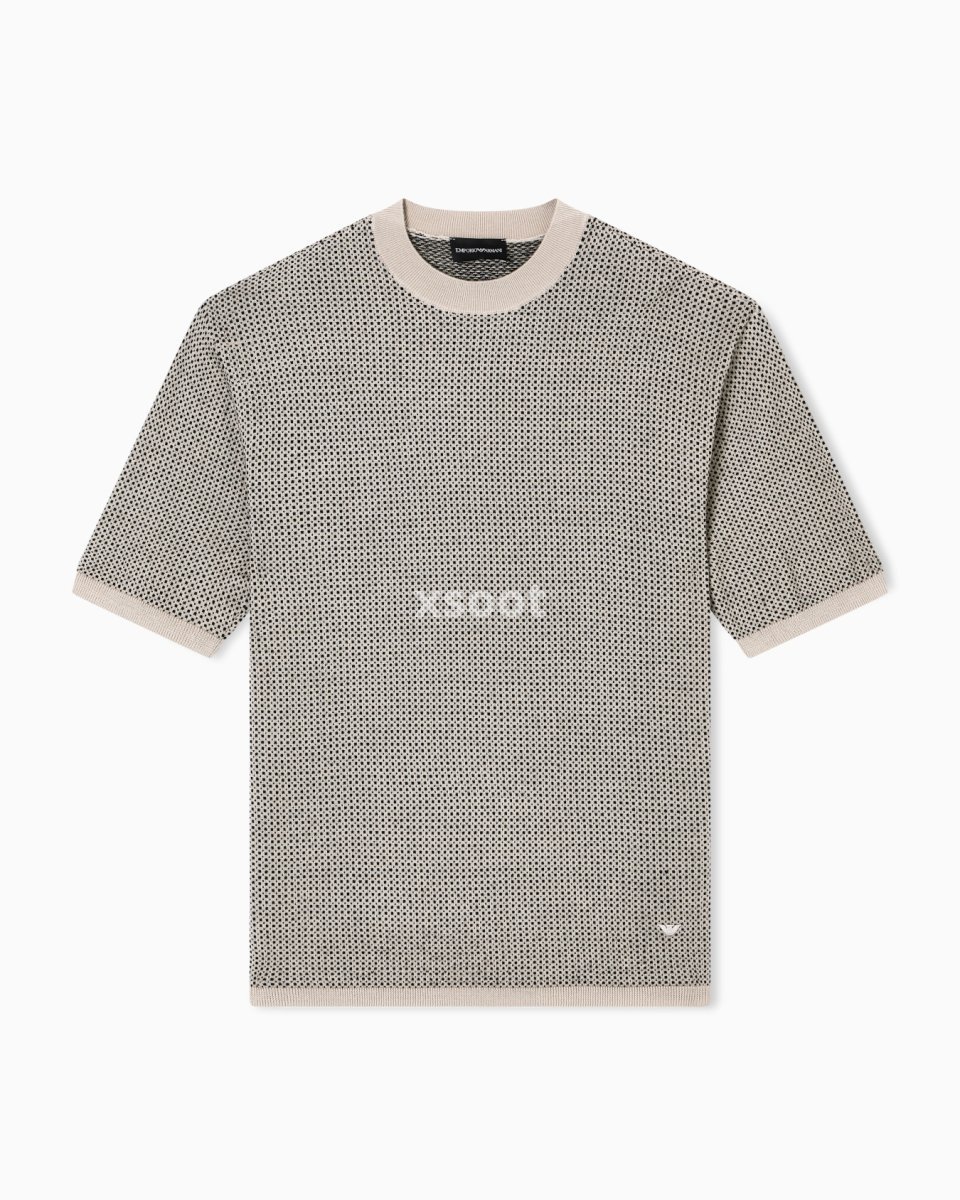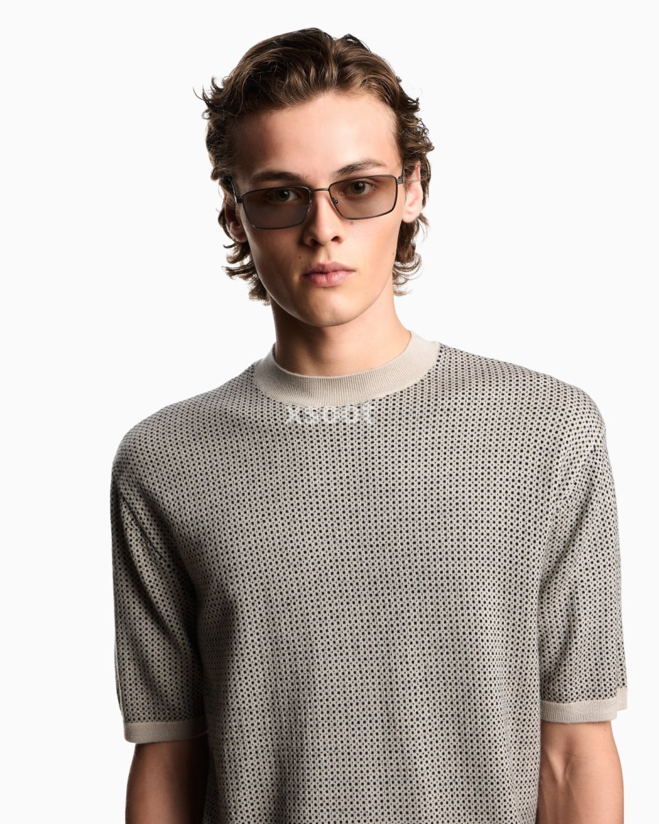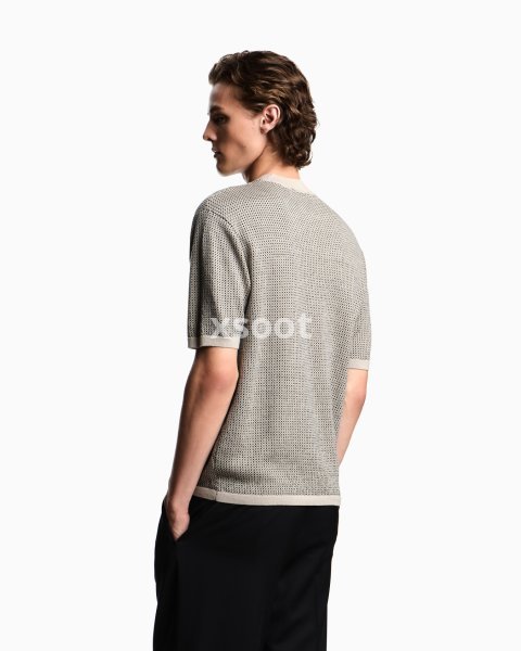 Crew-neck jumper made of pure virgin wool, featuring an all-over jacquard that creates a two-tone micro motif with an op-art effect.