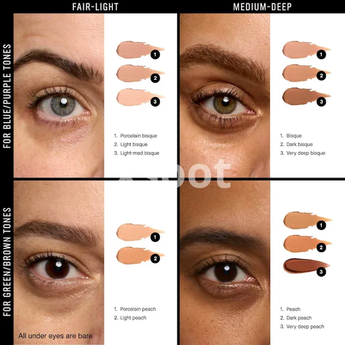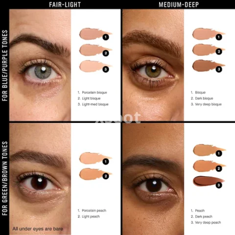 A full-coverage color corrector that neutralizes dark under-eye circles and other discoloration around the face for up to eight hours of coverage.