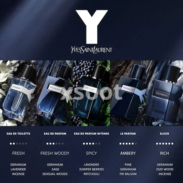 The signature Y scent is a bold and woody men's fragrance. This seductive cologne is infused with sophisticated and revitalizing notes of sage and geranium and rounded out with a hint of sensual wood.