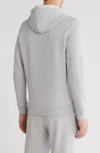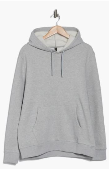 Layer on this sporty pullover hoodie constructed from soft cotton and recycled-polyester blend fleece for maximum comfort.