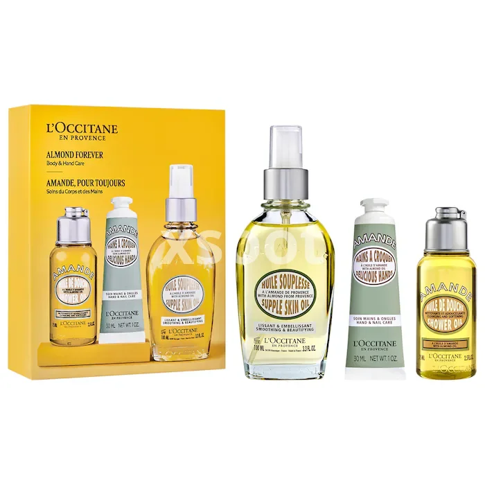 A luxurious trio of almond oil-infused favorites including L’Occitane’s best-selling shower oil, nourishing body oil, and silky hand cream.