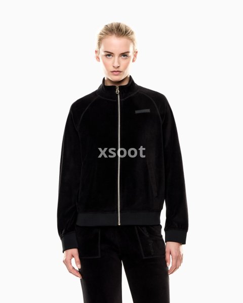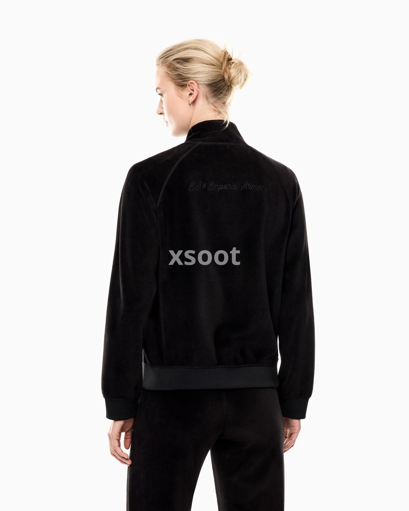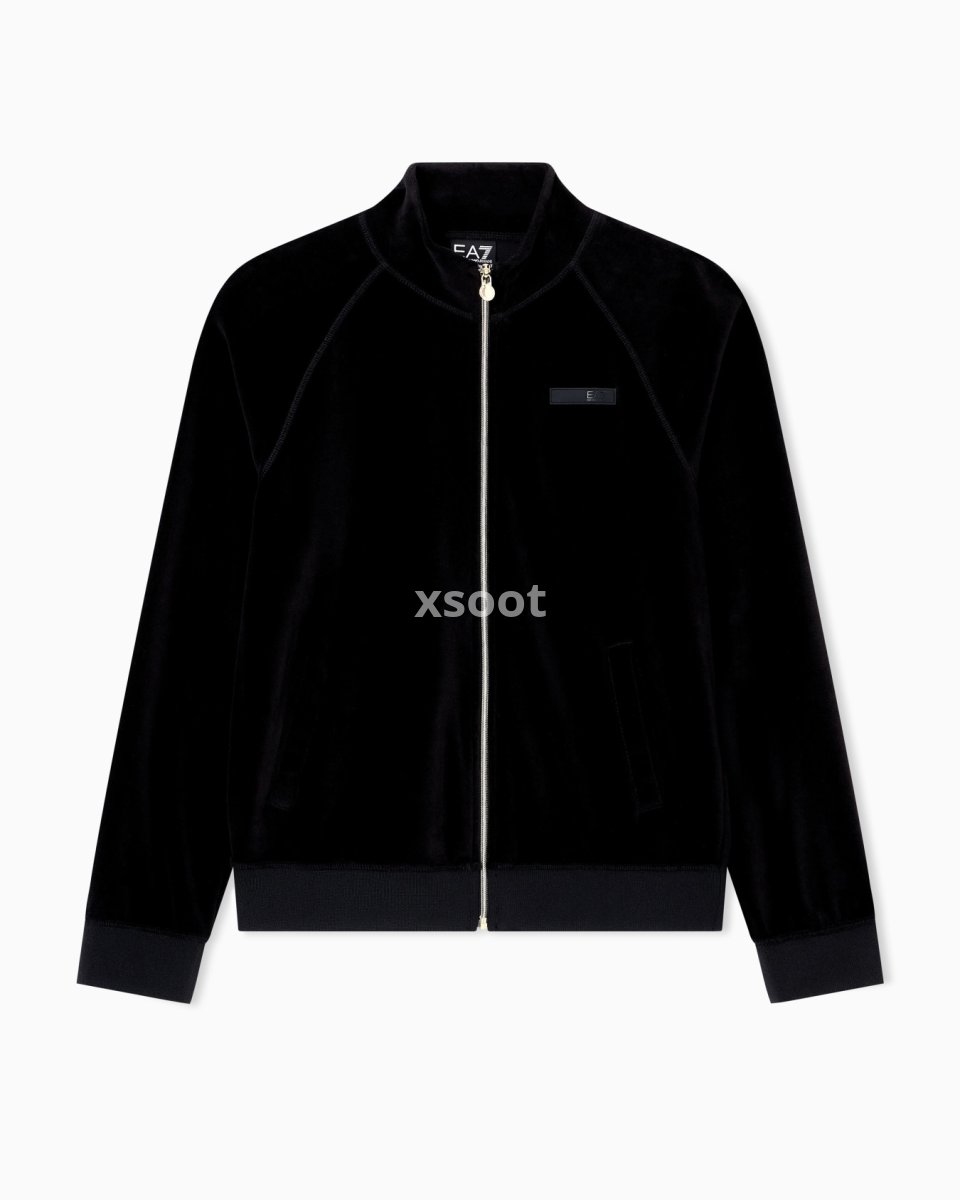 Sweatshirt with upright collar, zip fastening and two side pockets, made of stretch cotton-blend chenille. Customised with a patch on the chest, the style is embellished with an embroidered Emporio Armani EA7 logo on the back that distinguishes the garment. The Athletic Velour li...