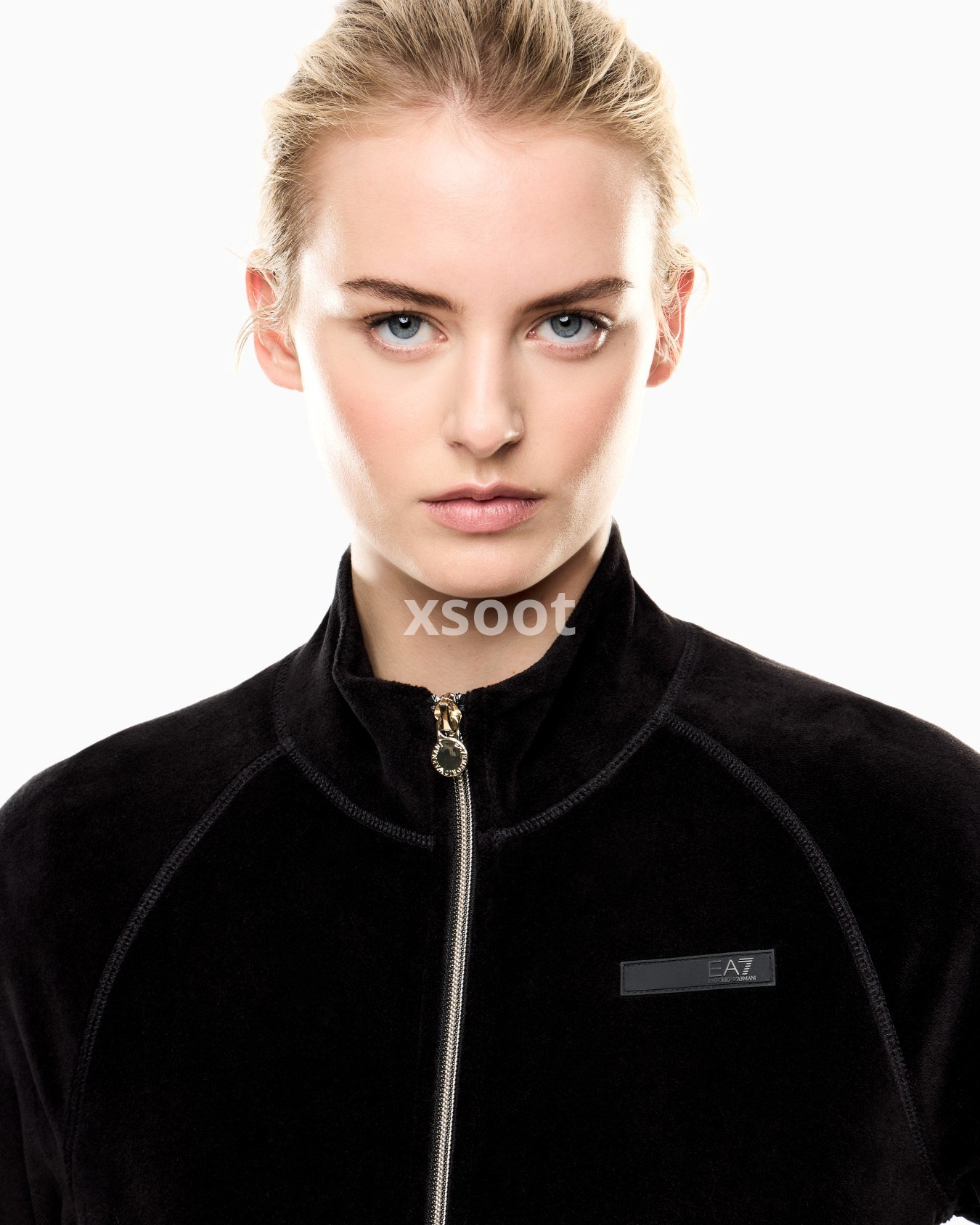 Sweatshirt with upright collar, zip fastening and two side pockets, made of stretch cotton-blend chenille. Customised with a patch on the chest, the style is embellished with an embroidered Emporio Armani EA7 logo on the back that distinguishes the garment. The Athletic Velour line offers clothing made from the brand’s iconic fabric reinterpreted in EA7 style. The entire selection is distinguished by rich and intense colours, embellished with an embroidered logo.