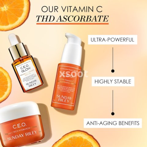 - THD Ascorbate (Vitamin C): Extremely stable, oil soluble form of vitamin C; helps fight the signs of aging caused by time, stress, lifestyle, and pollution, including dullness, visible loss of firmness, the signs of lines and wrinkles, and the appearance of dark spots and surface redness.