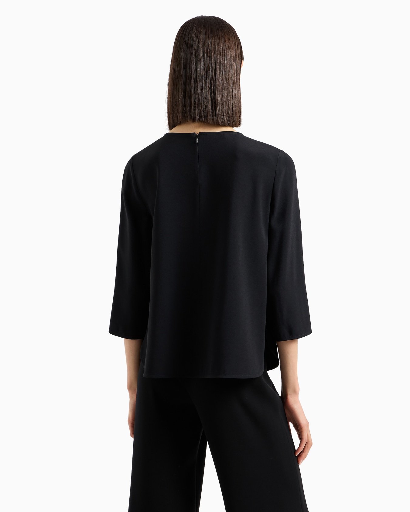 The Essentials selection makes a statement of enduring style: both elegant and practical, it works to numerous combinations on a wide array of occasions. The colour palette includes the brand’s characteristic neutral nuances, such as white, black and blue which, combined with a minimalist design, create a series of key pieces for the female wardrobe. Made of a flowing fabric, this blouse gently follows the shape of the body and is designed for the multi-tasking modern woman who requires an impeccable look. Half zip and concealed back zip.