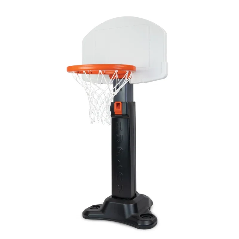 The perfect beginner hoop for toddlers, the rookie adjustable basketball set gives your little baller confidence with a wide hoop and authentic swish net. The backboard is scaled for competitive play, adjusts easily for different heights - 32" to 48". This set includes size 3 basketball, great for indoor play, outdoor games and pool side. Step up your family play with bank shots, alley-oops and fade aways! This premium hoop has been designed to provide a lifetime of fun, and every feature on this set has been designed with durability and function in mind. Be a huplay fan and give the gift to your children, grandchildren, friends and neighbors. Great for little ballers to enjoy for everyday fun and play!