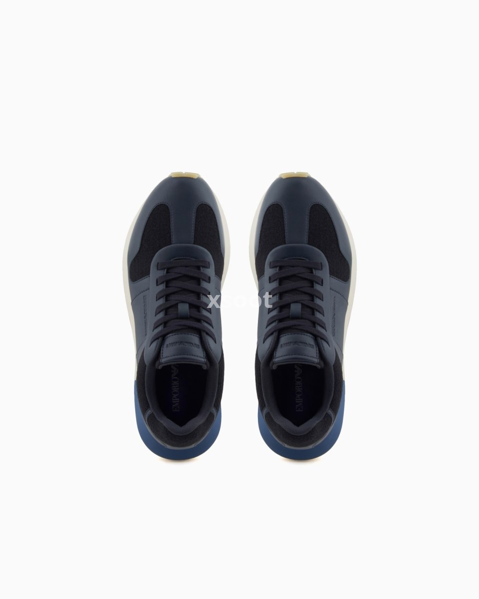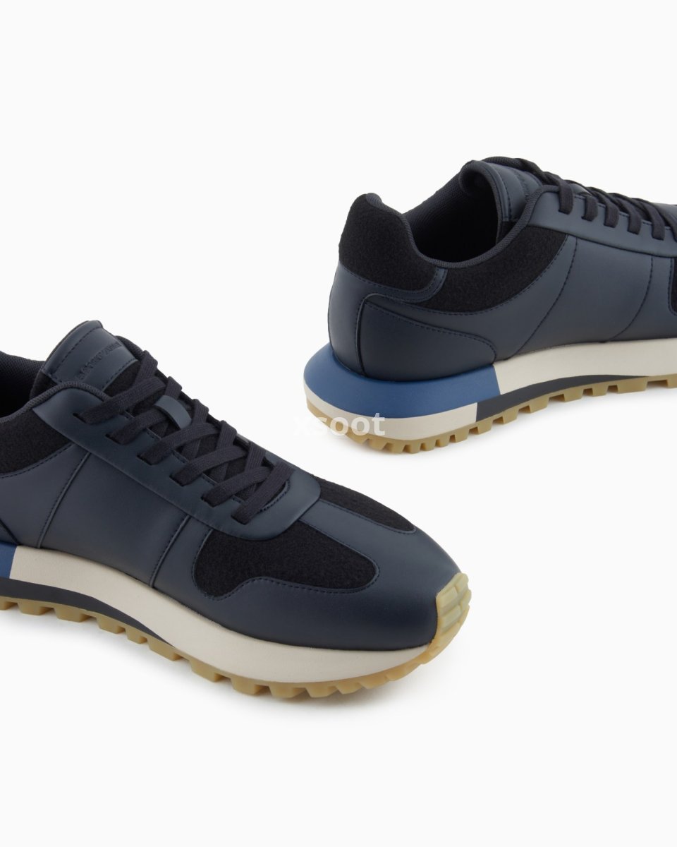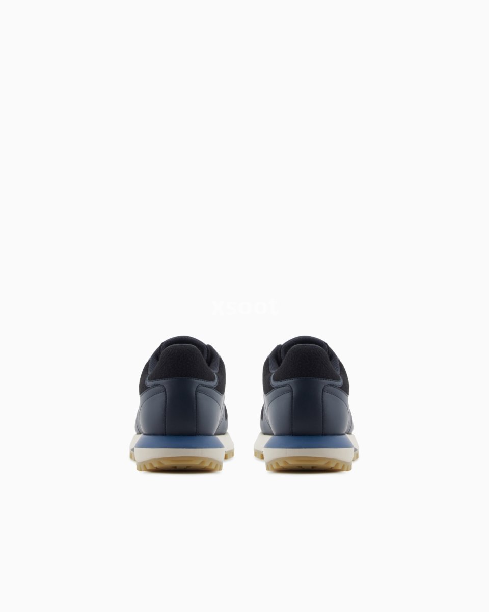 Cowhide sneakers with felt details with a side logo that adds distinction. The felt insole completes the style with winter appeal. The customised running shoe sole is made of recycled EVA with non-slip tread. Sophisticated in style and deeply inspired by traditional running sneakers, they are versatile and suitable for even the most elegant occasions.