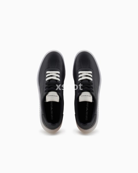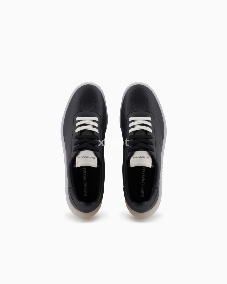 Leather sneakers with high frequency details. A minimalist style, featuring a sleek, modern silhouette and semi-transparent sole: versatile sneakers suitable for multiple occasions.
