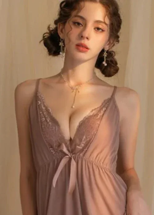 Features: Deep V-neck with delicate lace cups for a sensual silhouette Adjustable spaghetti straps for a custom fit Soft, breathable mesh fabric that feels feather-light Ruffled lace hem adds a graceful touch Includes matching thong for a complete look Ideal for intimate evenings, honeymoon nights, or special surprises Ideal for bra sizes 30A to 38D